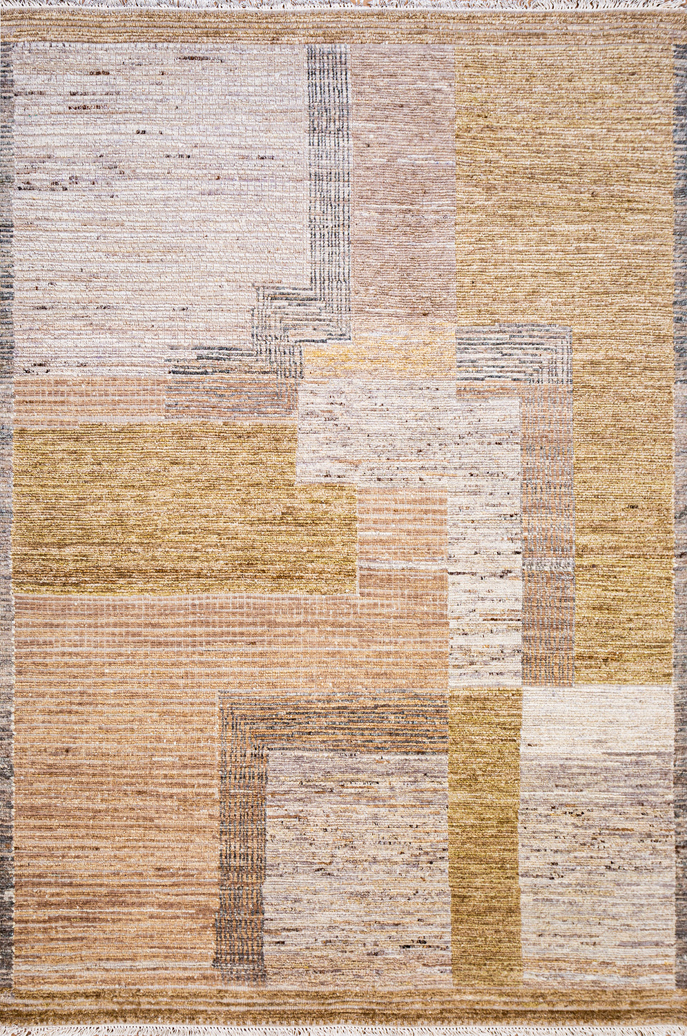 Крупные рисунки в виде линий и фигур на фактурной поверхности ковра превращаются в выразительные композиции. Они акцентируют на себе внимание и добавляют динамики в современный интерьер. Комбинации разных фигур и повторяющийся орнамент задают ритмическую основу пространству, привносят в него оригинальные оптические иллюзии.