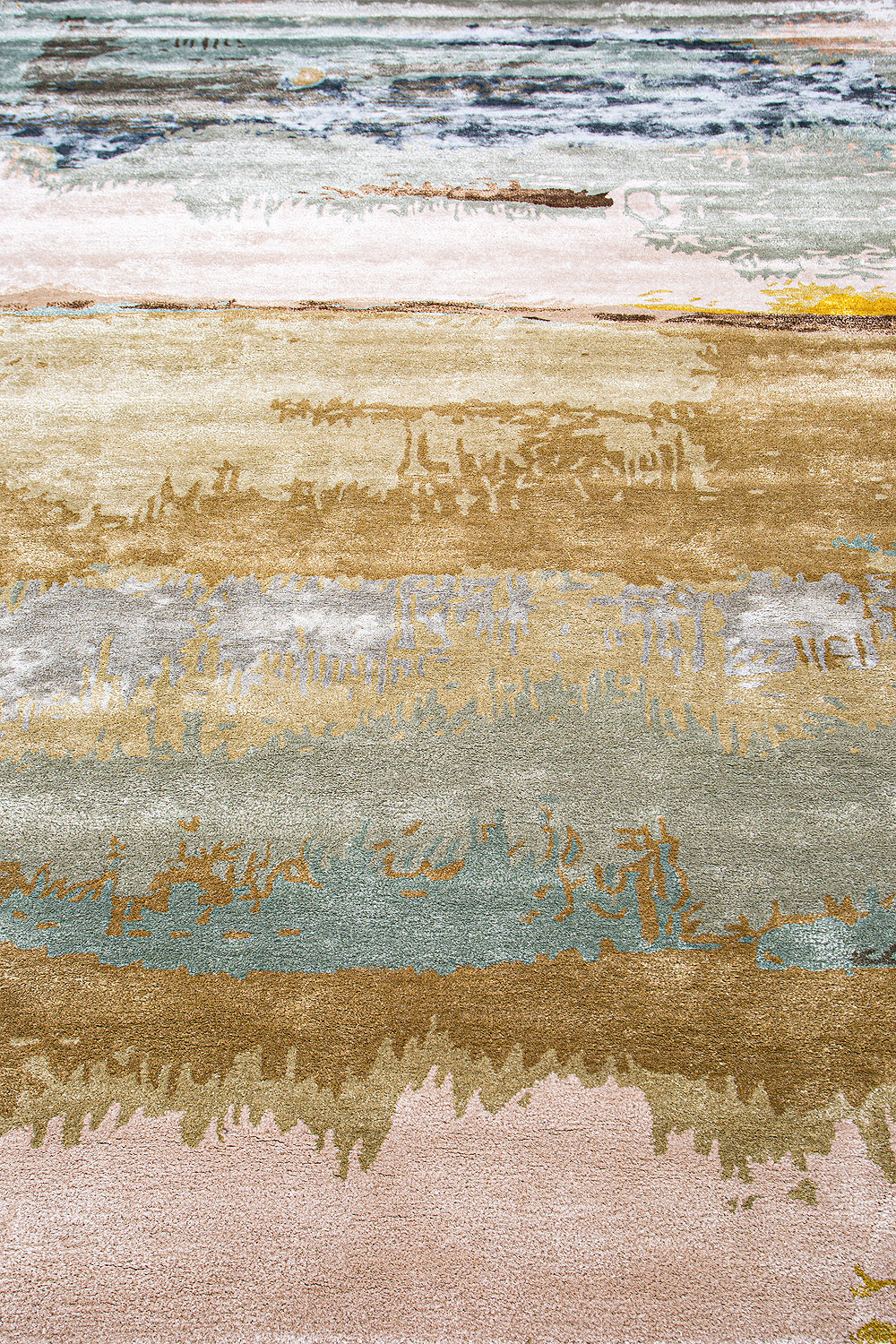 Ковры изготовлены методом ручного тафтинга. Эта технология позволяет создавать объемный рисунок и мягкие переходы цвета. Почитатели коллекции Shine ценят богатую фактуру ковров в сочетании с натуральными материалами и превосходной техникой в исполнении индийских мастеров.