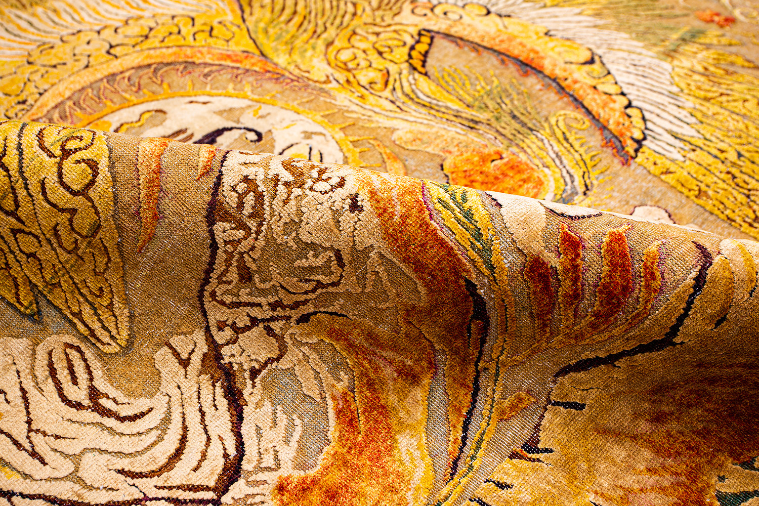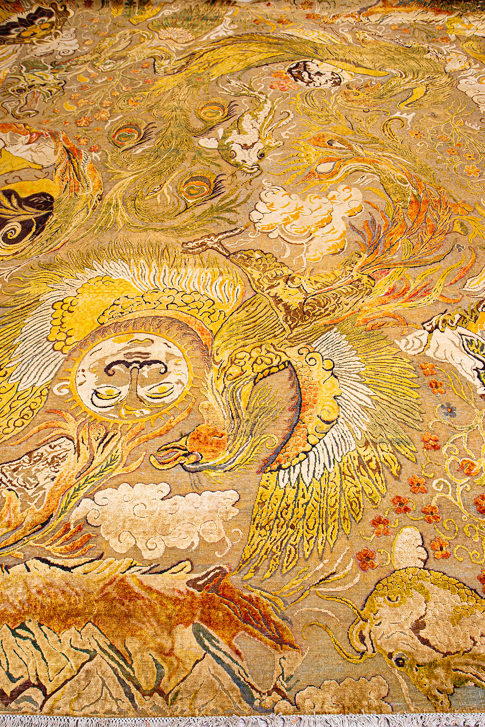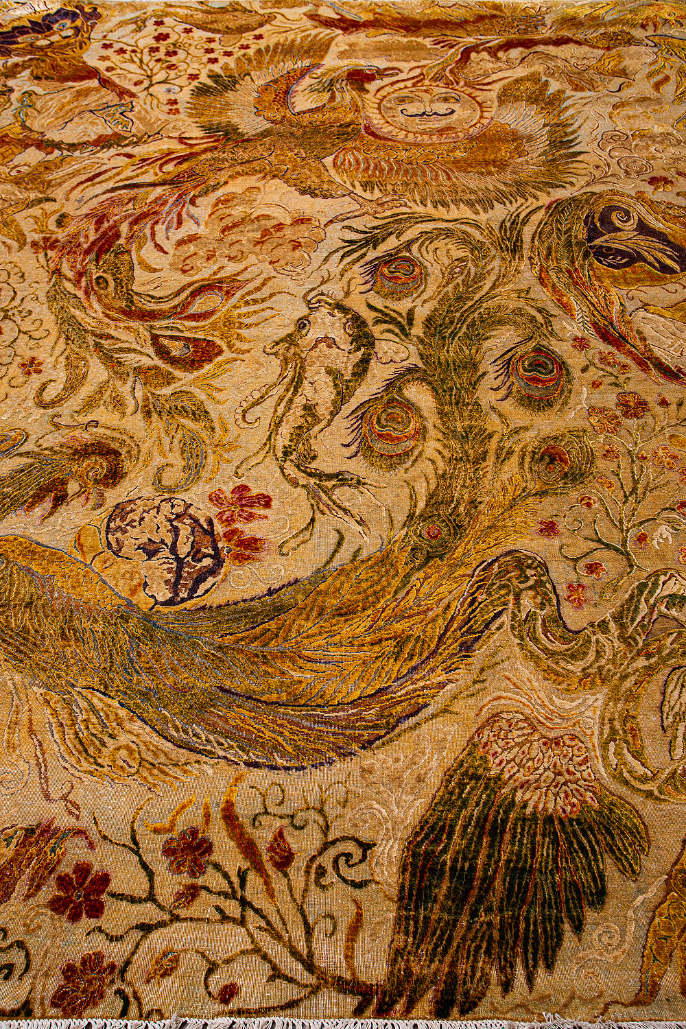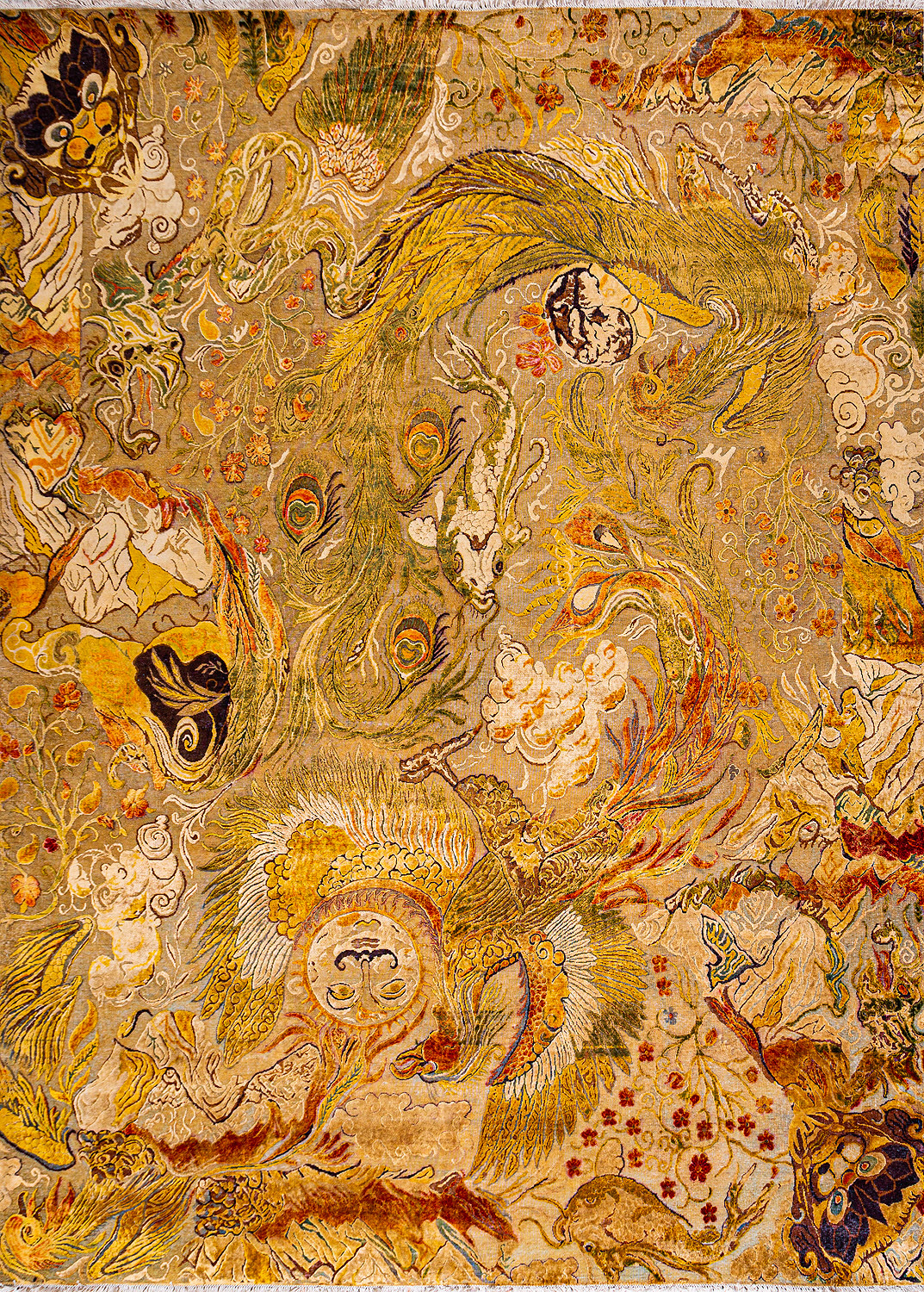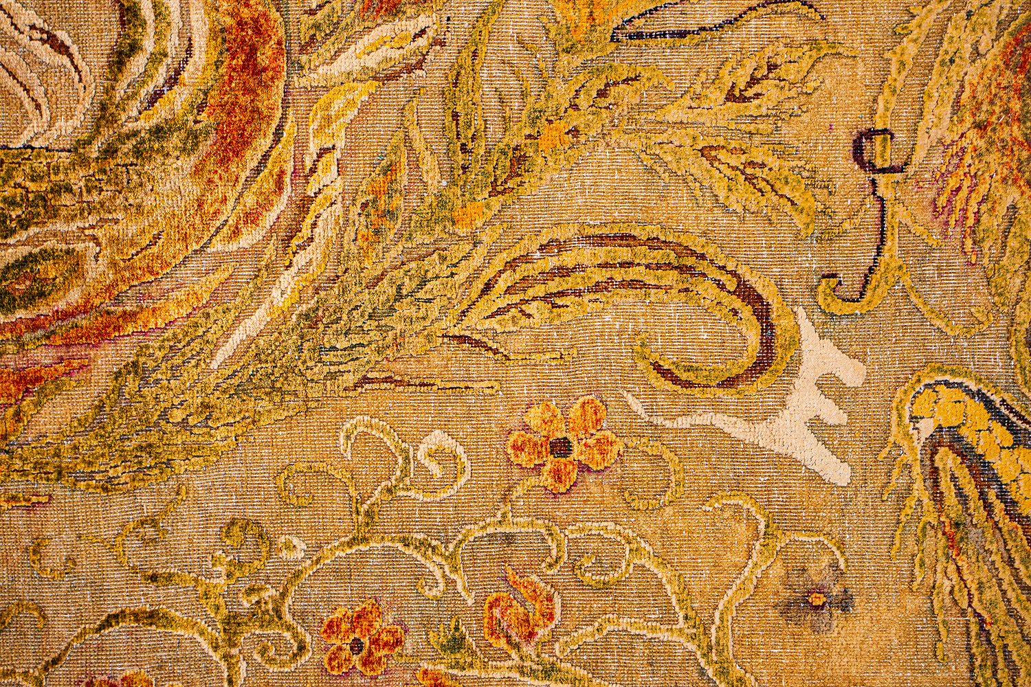 Родина этих ковров Индия и Пакистан. Чтобы создать такое произведение искусства у мастеров уходит от одного года до двух лет. Плотность ковров, в зависимости от размера, составляет от 150 000 до 400 000 узлов на квадратный метр.