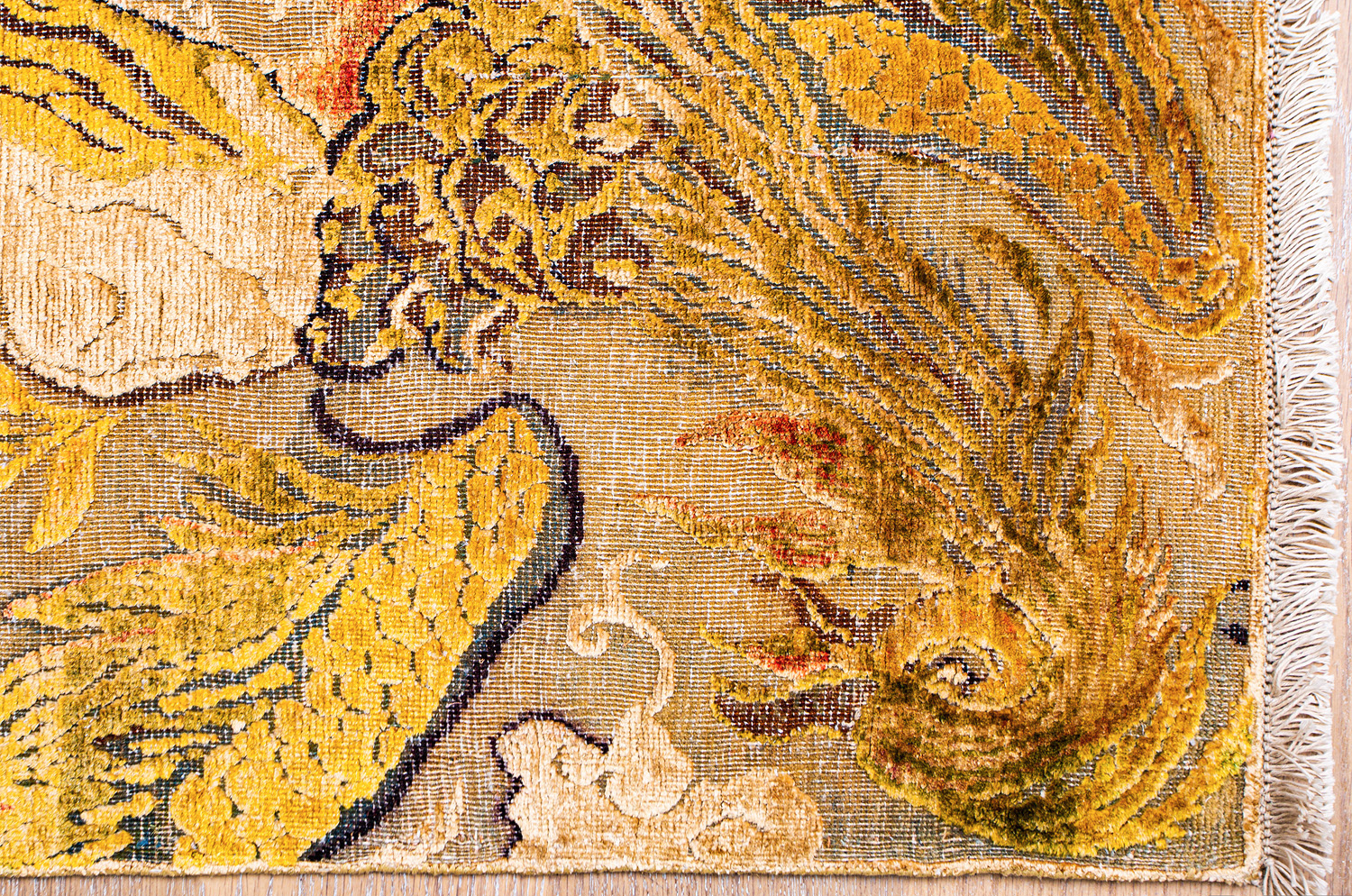 Родина этих ковров Индия и Пакистан. Чтобы создать такое произведение искусства у мастеров уходит от одного года до двух лет. Плотность ковров, в зависимости от размера, составляет от 150 000 до 400 000 узлов на квадратный метр.