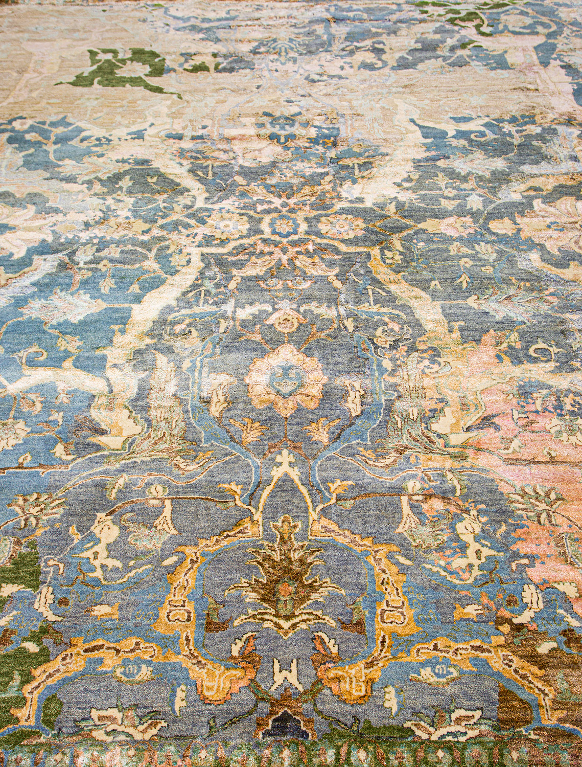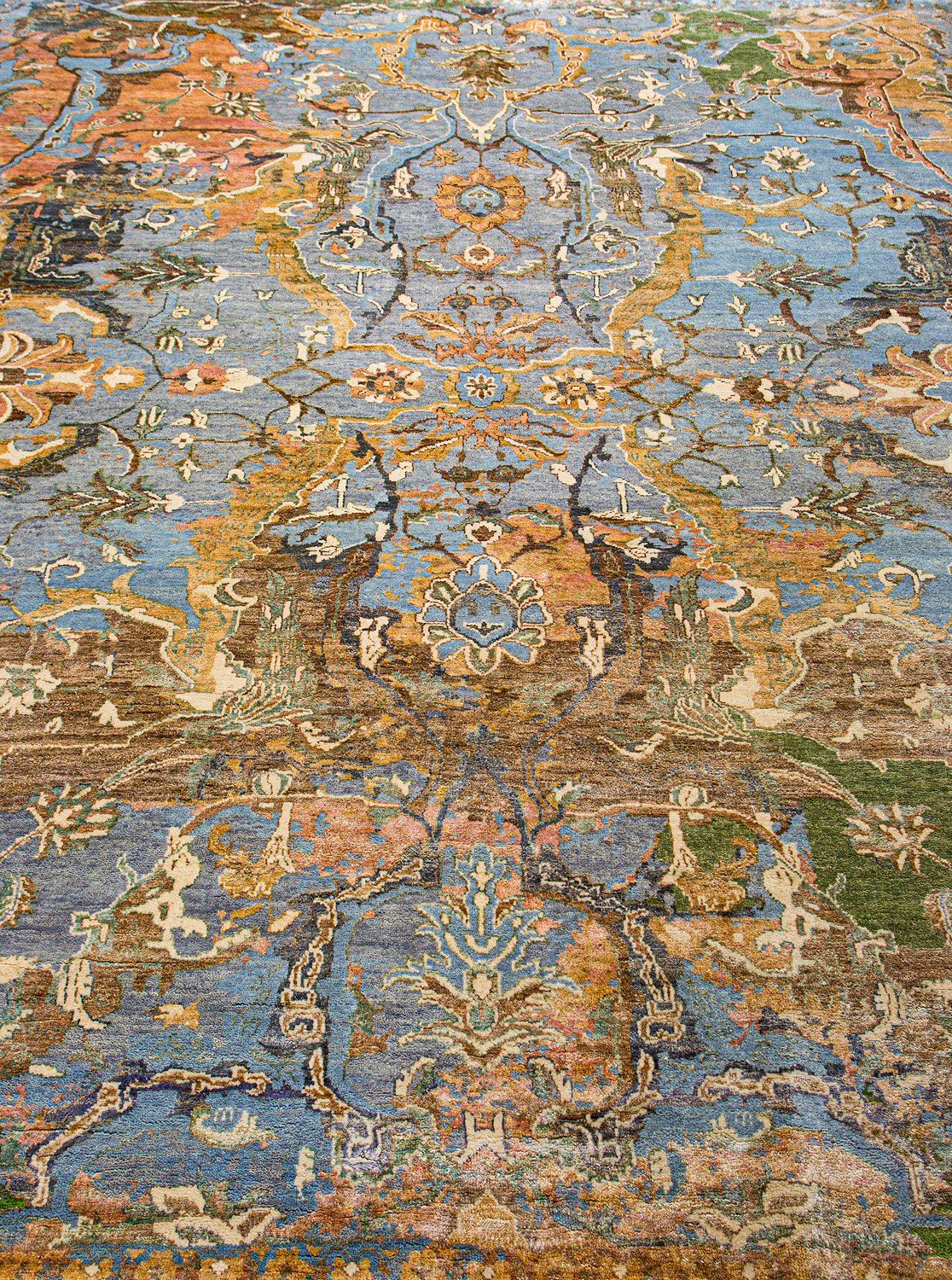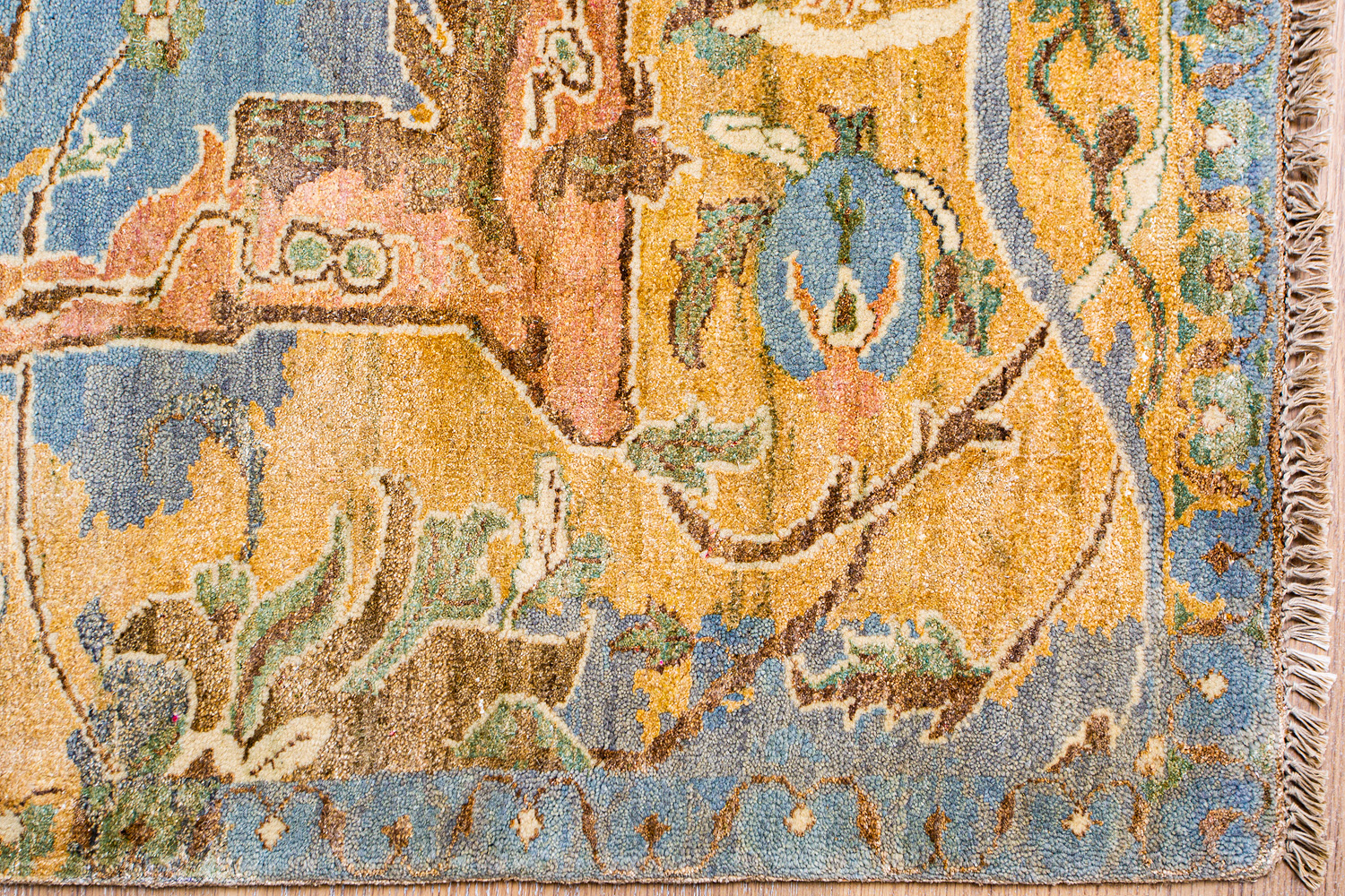 Родина этих ковров Индия и Пакистан. Чтобы создать такое произведение искусства у мастеров уходит от одного года до двух лет. Плотность ковров, в зависимости от размера, составляет от 150 000 до 400 000 узлов на квадратный метр.