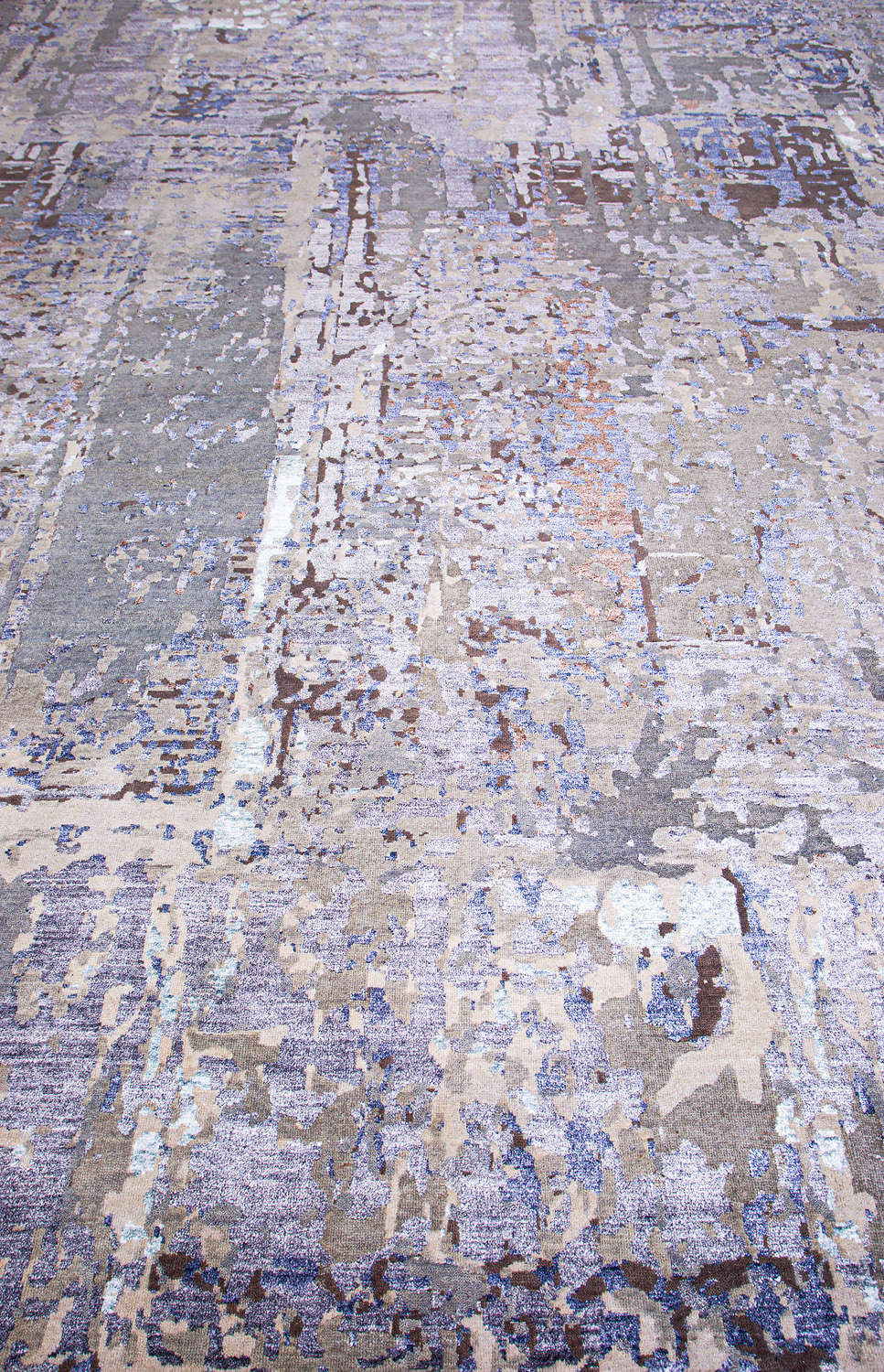 Дизайн ковров напоминает современные полотна художников-абстракционистов и производит столь же яркое и незабываемое впечатление в интерьере. Живописный эффект и необычная фактура зависят от выбора материала: натуральной шерсти, шёлка и от их сочетаний друг с другом. Ковры ткутся вручную в лучших мастерских Индии и Пакистана.