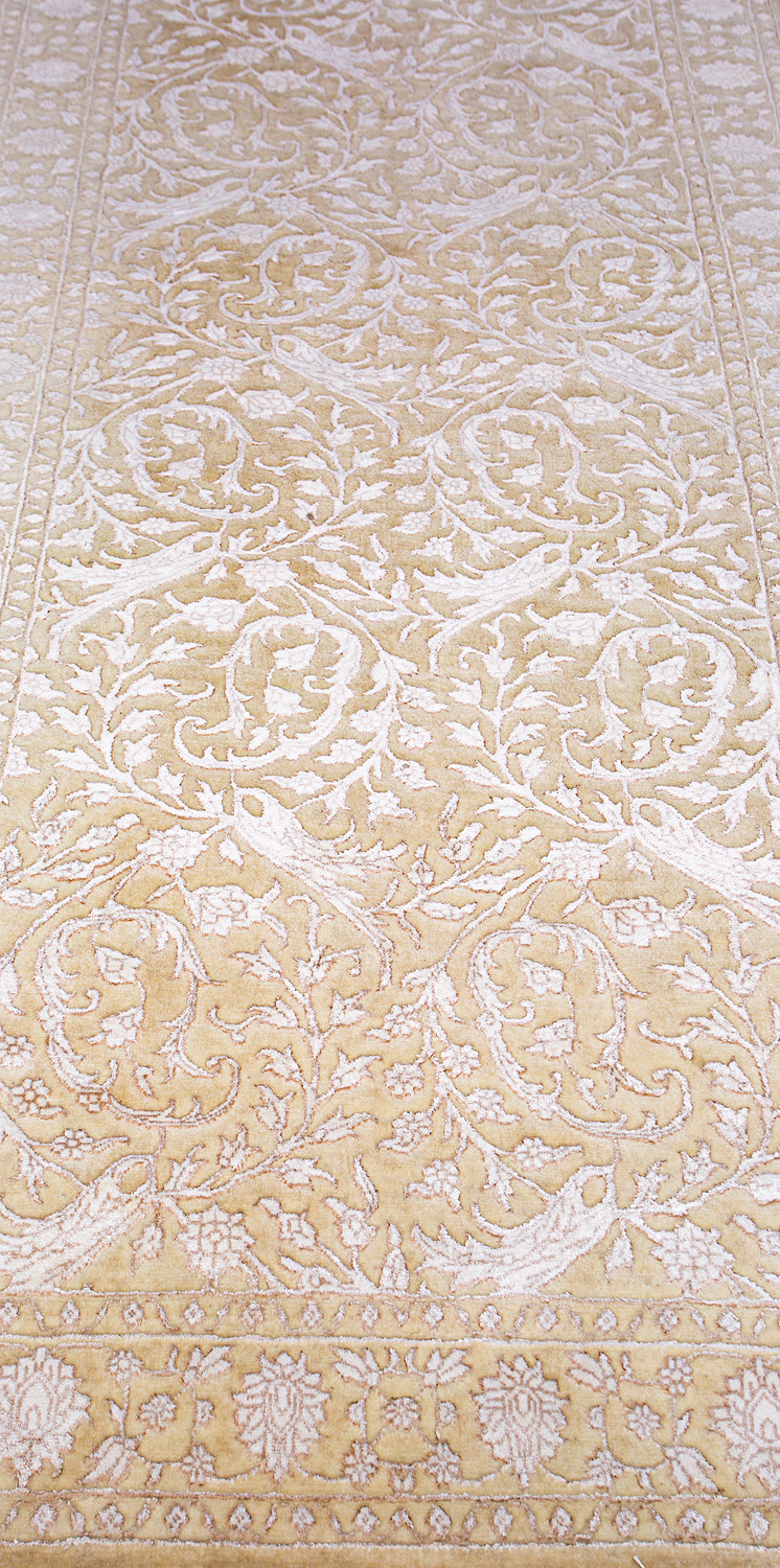 Каждый ковер в этой коллекции соткан вручную из шерсти и арт шёлка опытными индийскими мастерами.