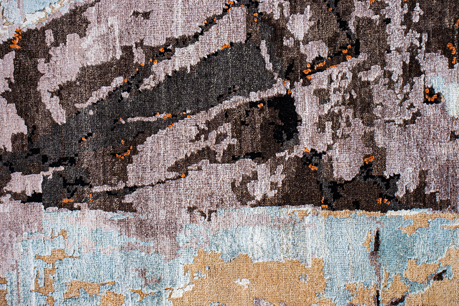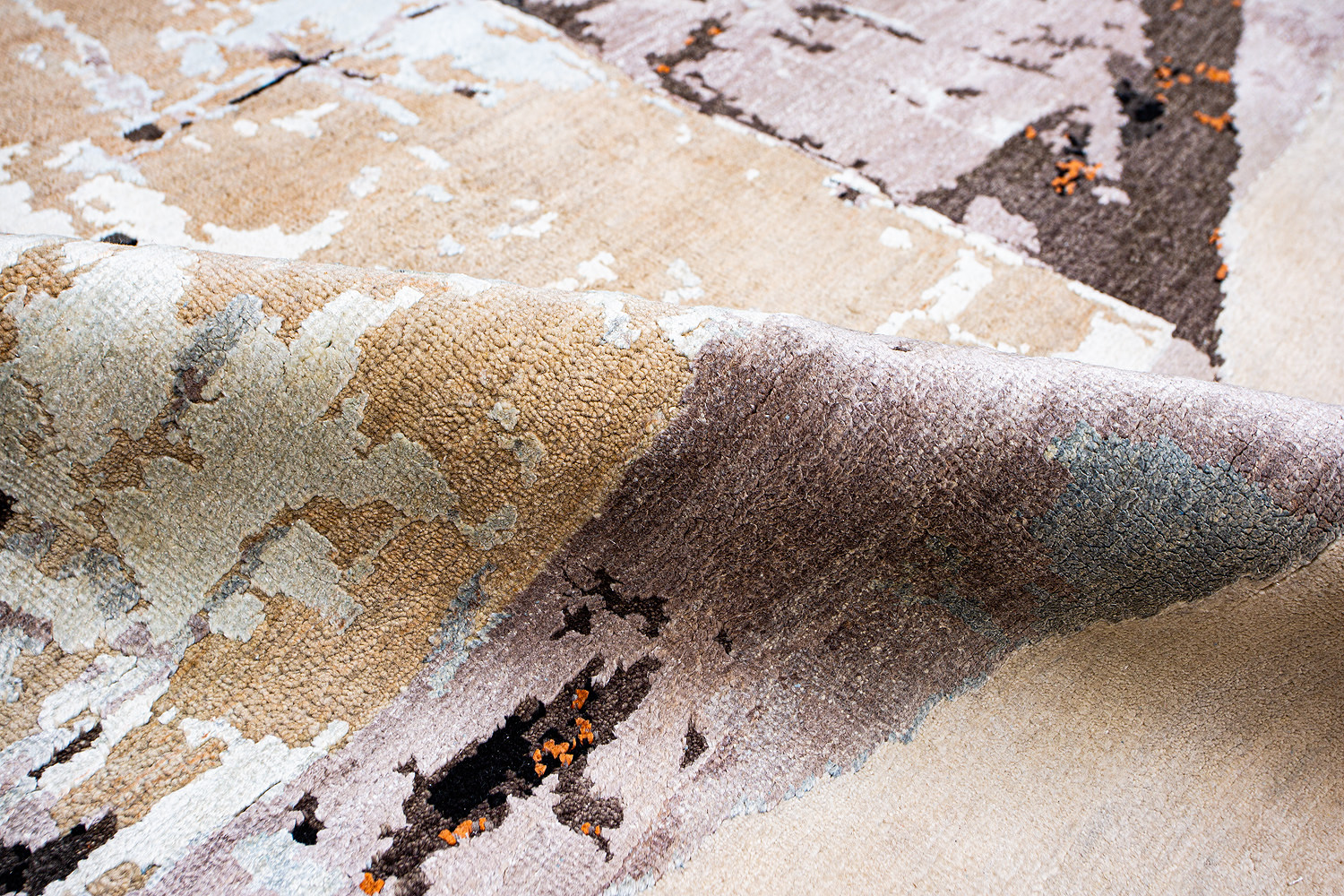 Дизайн ковров напоминает современные полотна художников-абстракционистов и производит столь же яркое и незабываемое впечатление в интерьере. Живописный эффект и необычная фактура зависят от выбора материала: натуральной шерсти, шёлка и от их сочетаний друг с другом. Ковры ткутся вручную в лучших мастерских Индии и Пакистана.