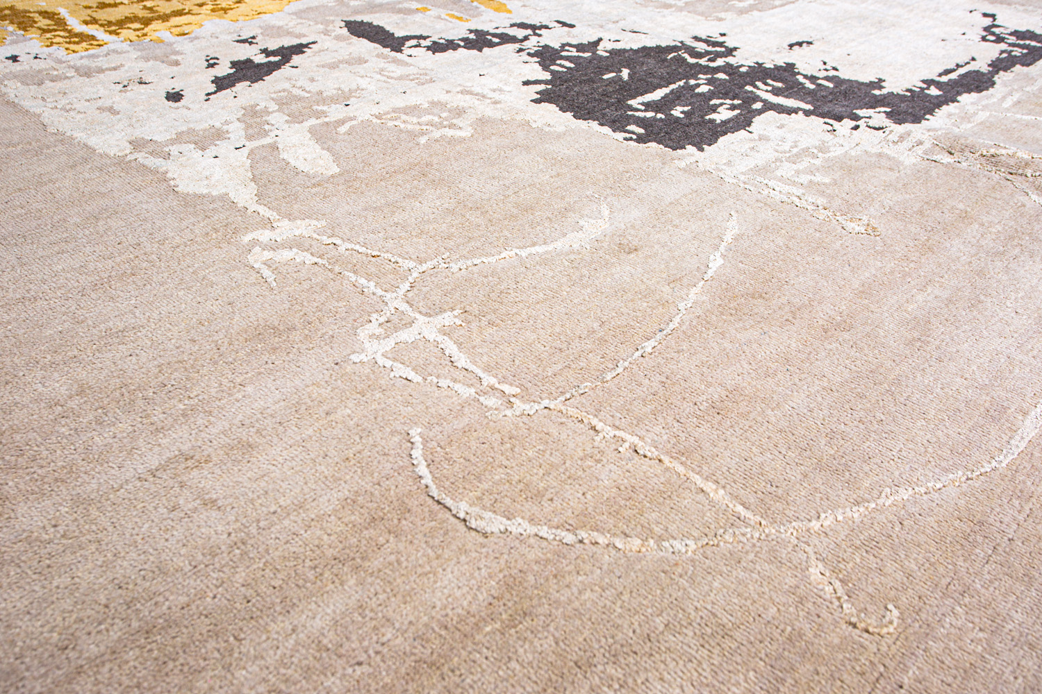 Дизайн ковров напоминает современные полотна художников-абстракционистов и производит столь же яркое и незабываемое впечатление в интерьере. Живописный эффект и необычная фактура зависят от выбора материала: натуральной шерсти, шёлка и от их сочетаний друг с другом. Ковры ткутся вручную в лучших мастерских Индии и Пакистана.