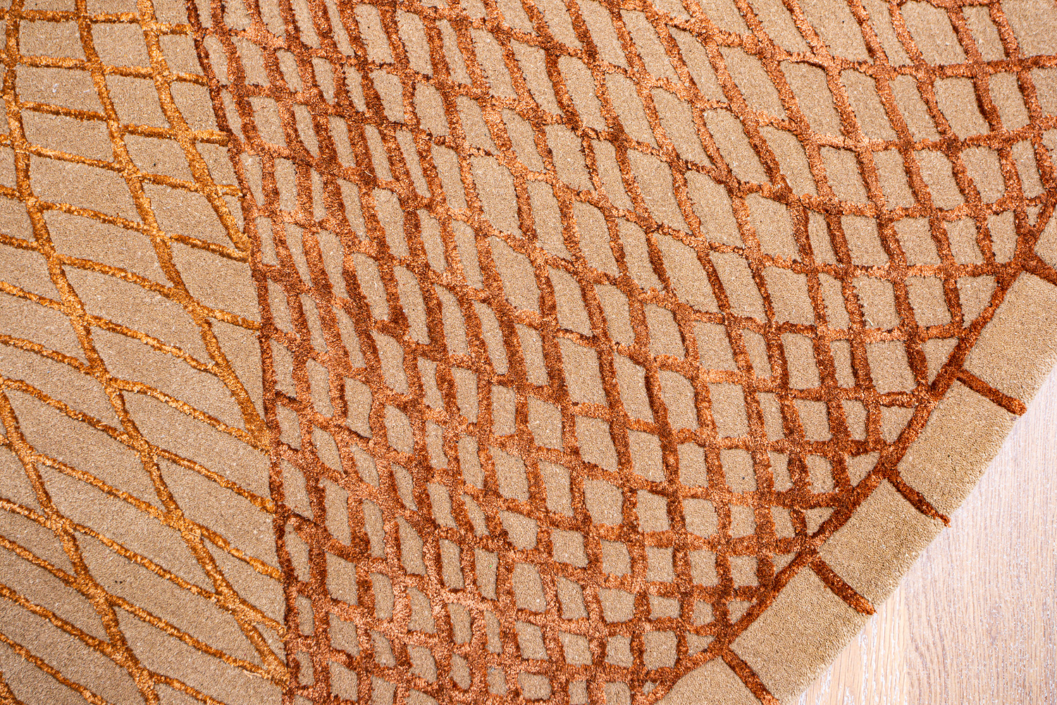Ковры изготовлены методом ручного тафтинга. Эта технология позволяет создавать объемный рисунок и мягкие переходы цвета. Почитатели коллекции Shine ценят богатую фактуру ковров в сочетании с натуральными материалами и превосходной техникой в исполнении индийских мастеров.
