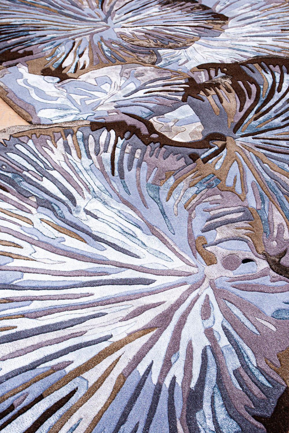 Ковры изготовлены методом ручного тафтинга. Эта технология позволяет создавать объемный рисунок и мягкие переходы цвета. Почитатели коллекции Shine ценят богатую фактуру ковров в сочетании с натуральными материалами и превосходной техникой в исполнении индийских мастеров.