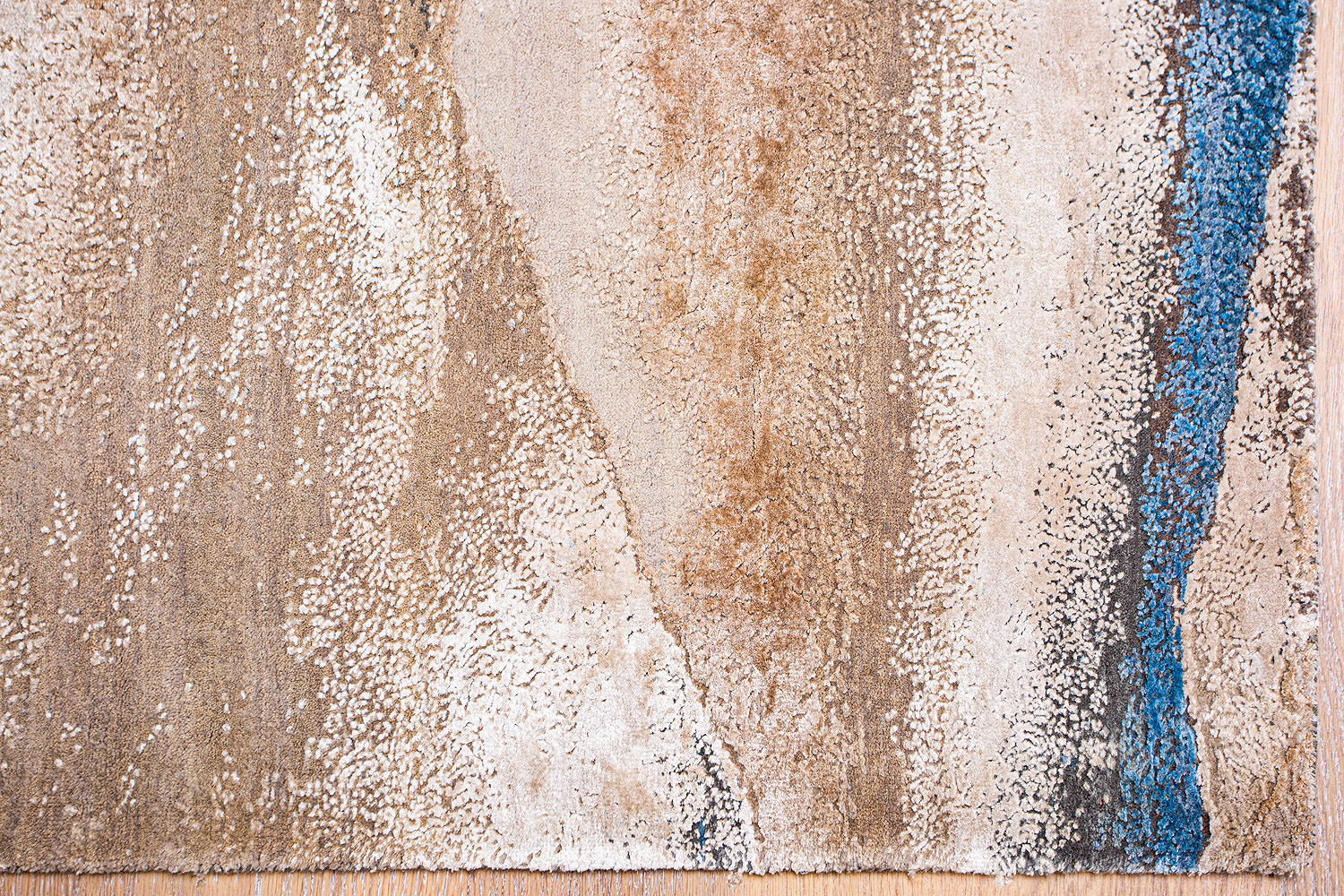 Дизайн ковров напоминает современные полотна художников-абстракционистов и производит столь же яркое и незабываемое впечатление в интерьере. Живописный эффект и необычная фактура зависят от выбора материала: натуральной шерсти, шёлка и от их сочетаний друг с другом. Ковры ткутся вручную в лучших мастерских Индии и Пакистана.