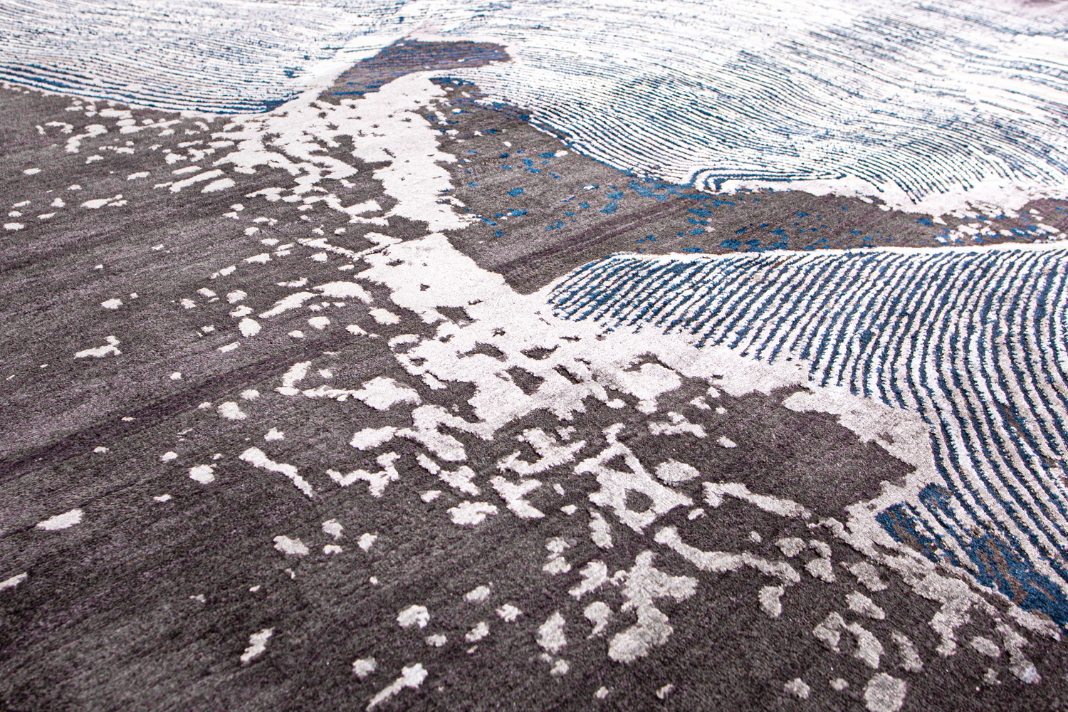 Дизайн ковров напоминает современные полотна художников-абстракционистов и производит столь же яркое и незабываемое впечатление в интерьере. Живописный эффект и необычная фактура зависят от выбора материала: натуральной шерсти, шёлка и от их сочетаний друг с другом. Ковры ткутся вручную в лучших мастерских Индии и Пакистана.