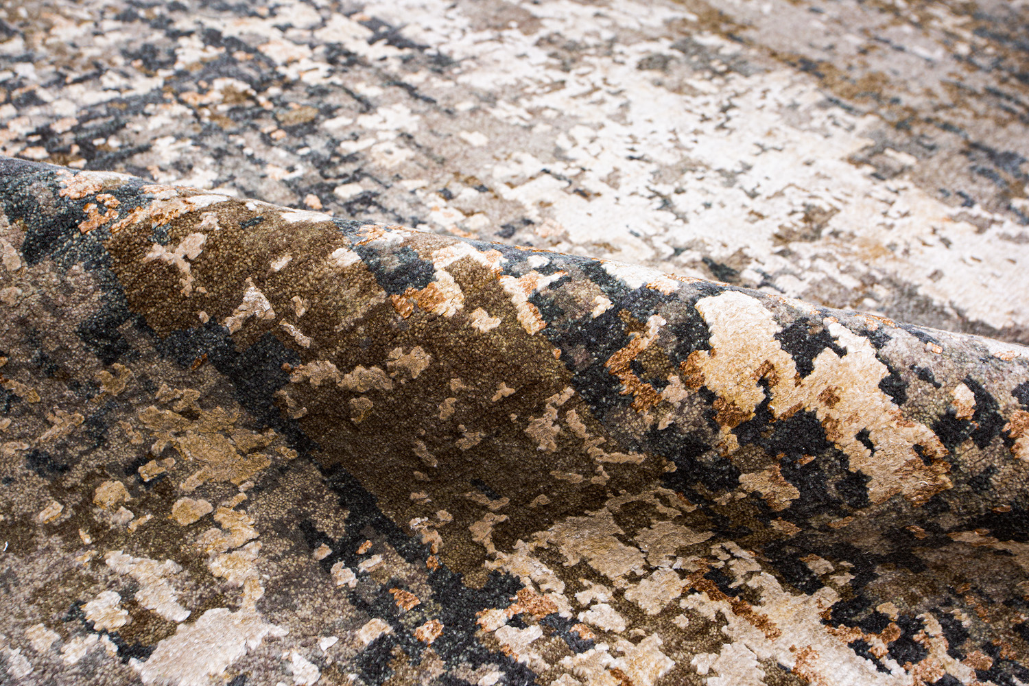 Дизайн ковров напоминает современные полотна художников-абстракционистов и производит столь же яркое и незабываемое впечатление в интерьере. Живописный эффект и необычная фактура зависят от выбора материала: натуральной шерсти, шёлка и от их сочетаний друг с другом. Ковры ткутся вручную в лучших мастерских Индии и Пакистана.