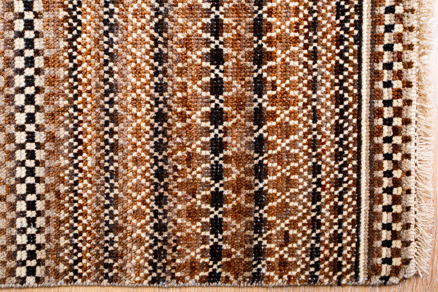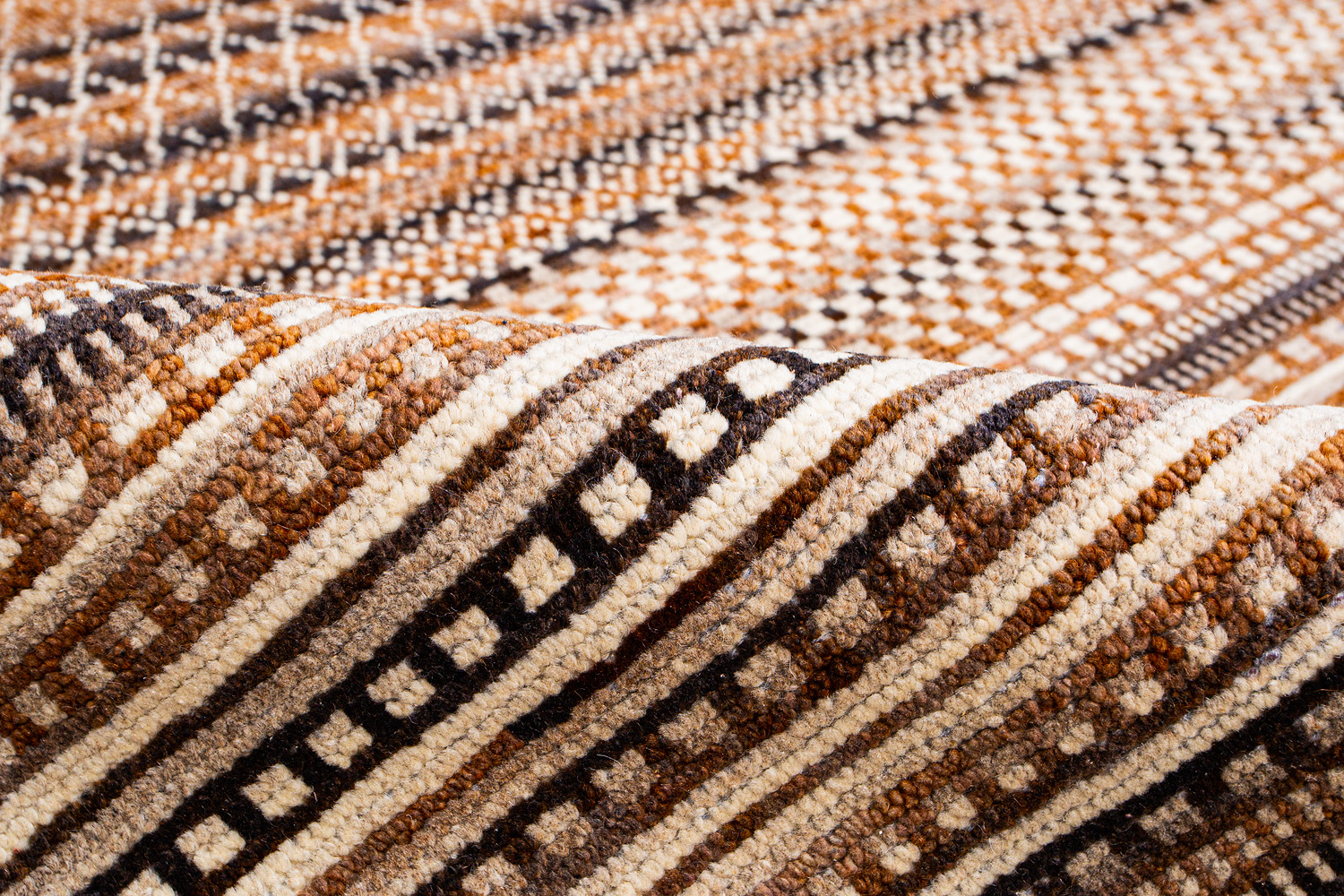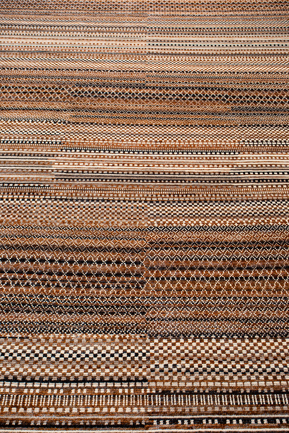Дизайн ковров напоминает современные полотна художников-абстракционистов и производит столь же яркое и незабываемое впечатление в интерьере. Живописный эффект и необычная фактура зависят от выбора материала: натуральной шерсти, шёлка и от их сочетаний друг с другом. Ковры ткутся вручную в лучших мастерских Индии и Пакистана.