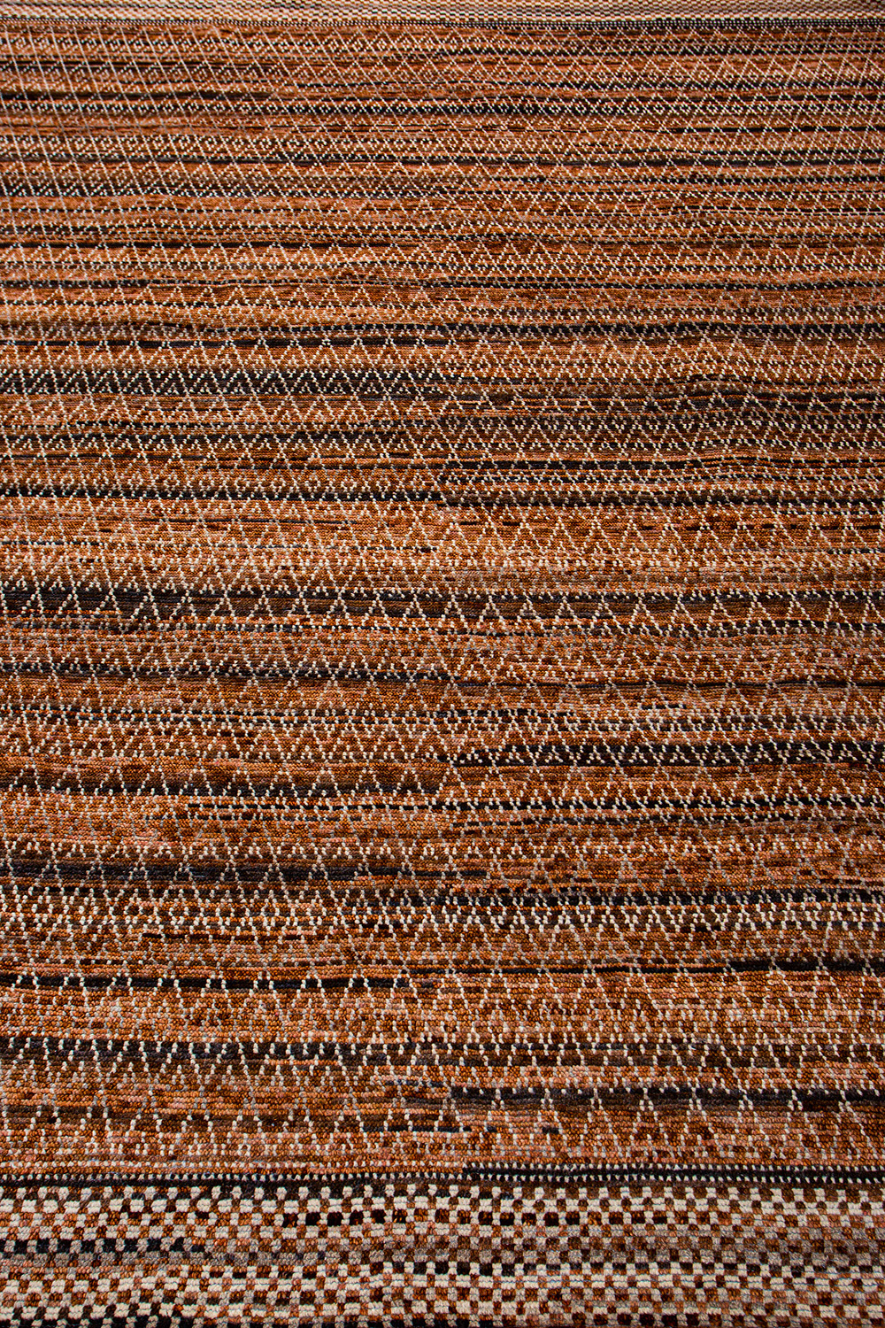 Дизайн ковров напоминает современные полотна художников-абстракционистов и производит столь же яркое и незабываемое впечатление в интерьере. Живописный эффект и необычная фактура зависят от выбора материала: натуральной шерсти, шёлка и от их сочетаний друг с другом. Ковры ткутся вручную в лучших мастерских Индии и Пакистана.