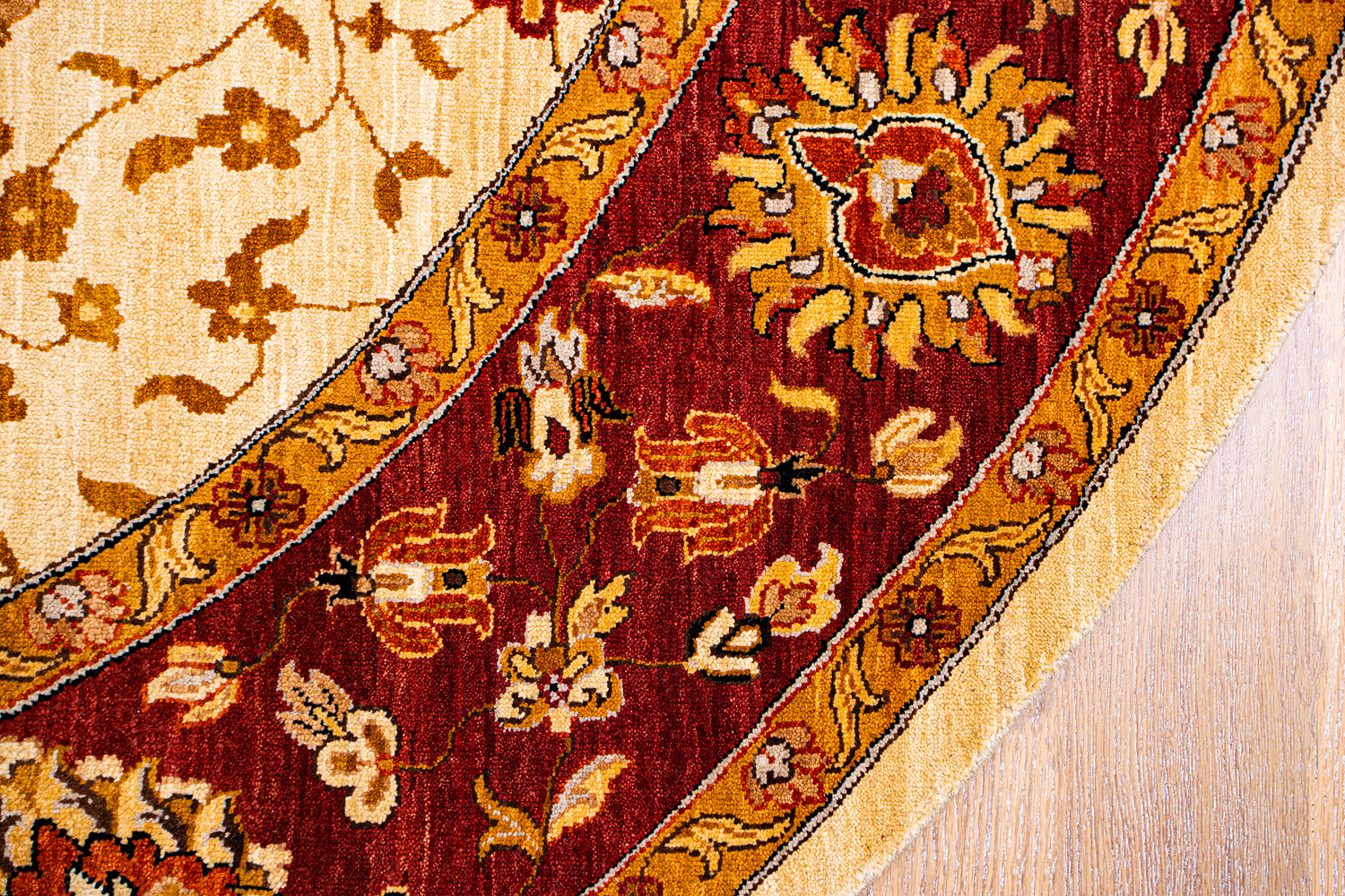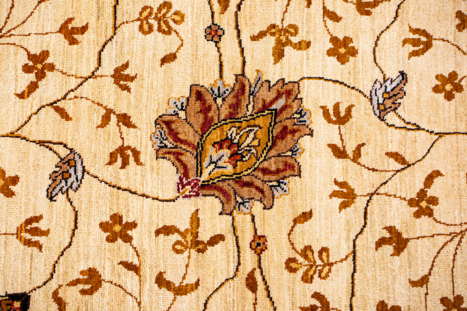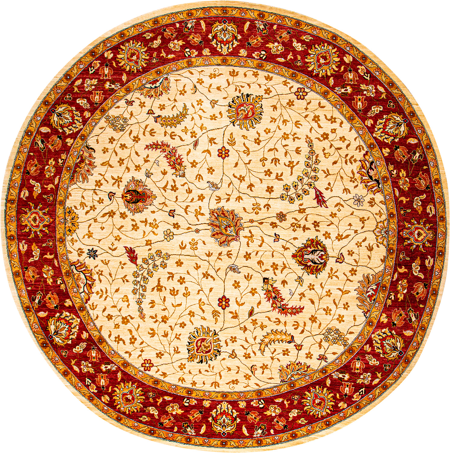 Более пяти веков назад в городе Агра зародилась знаменитая индийская школа ковроткачества, прославившаяся не меньше, чем расположенный здесь же Тадж-Махал. Мощное персидское влияние, помноженное на местный колорит, привело к появлению оригинальных орнаментов с богатыми растительными узорами — причудливым цветам, ветвям и листьям, разбросанным по всему полю ковра.