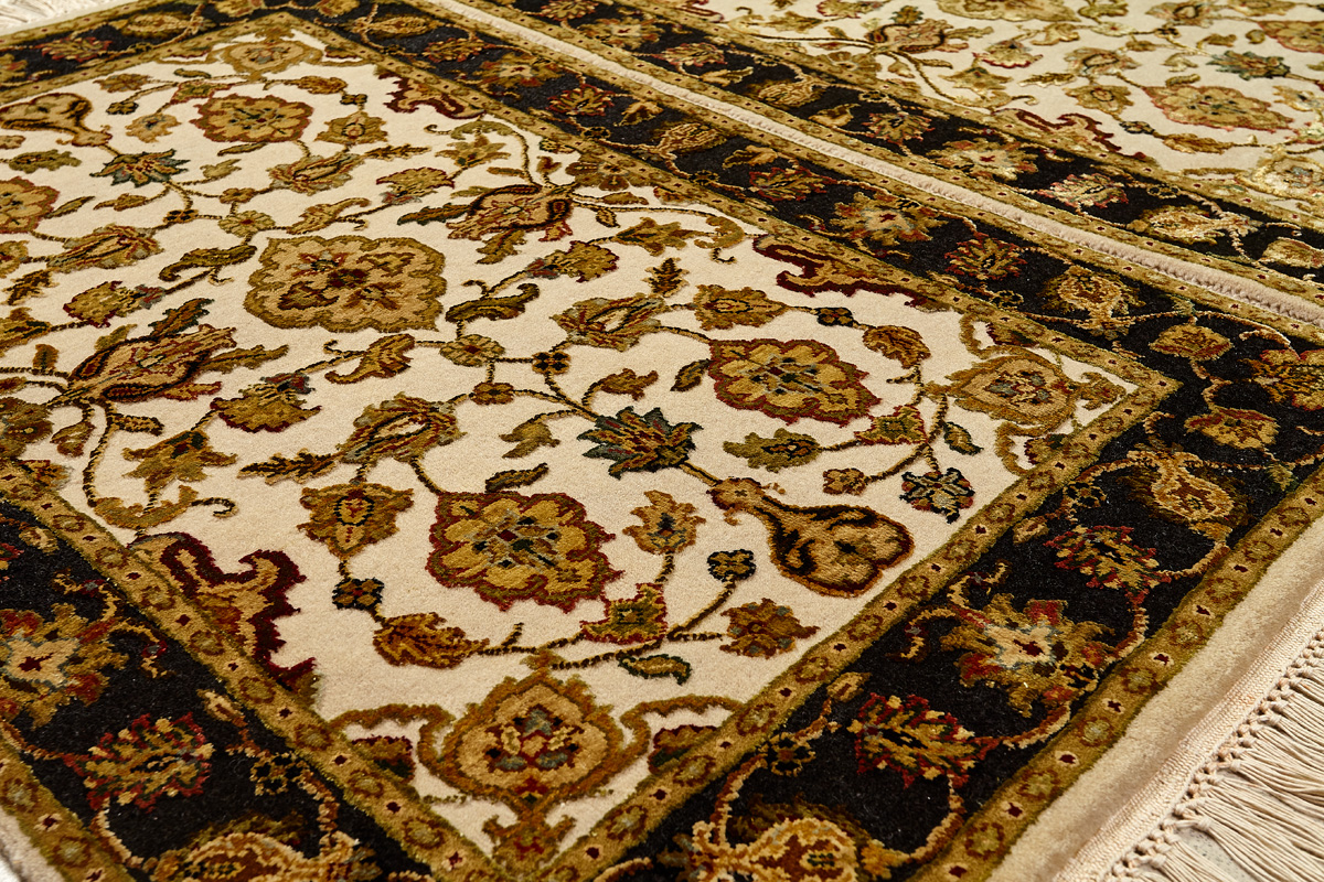 Более пяти веков назад в городе Агра зародилась знаменитая индийская школа ковроткачества, прославившаяся не меньше, чем расположенный здесь же Тадж-Махал. Мощное персидское влияние, помноженное на местный колорит, привело к появлению оригинальных орнаментов с богатыми растительными узорами — причудливым цветам, ветвям и листьям, разбросанным по всему полю ковра.