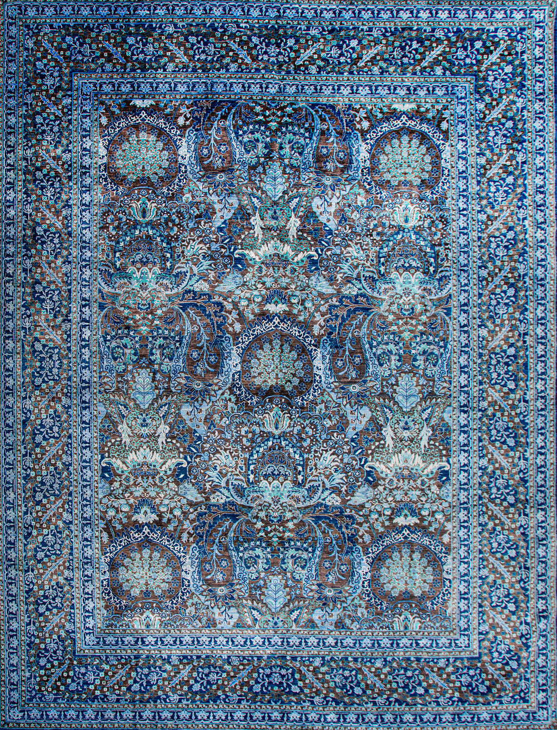 Родина этих ковров Индия и Пакистан. Чтобы создать такое произведение искусства у мастеров уходит от одного года до двух лет. Плотность ковров, в зависимости от размера, составляет от 150 000 до 400 000 узлов на квадратный метр.