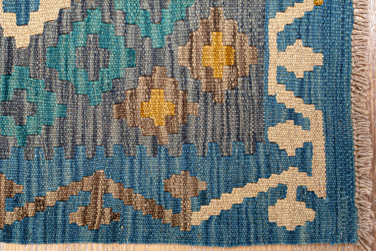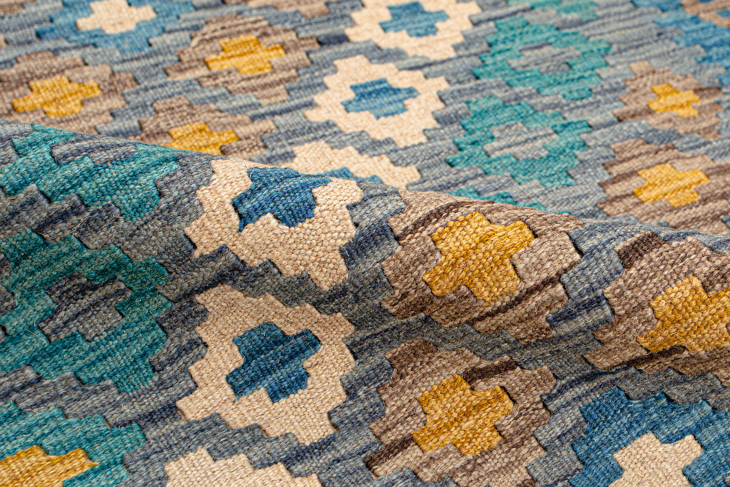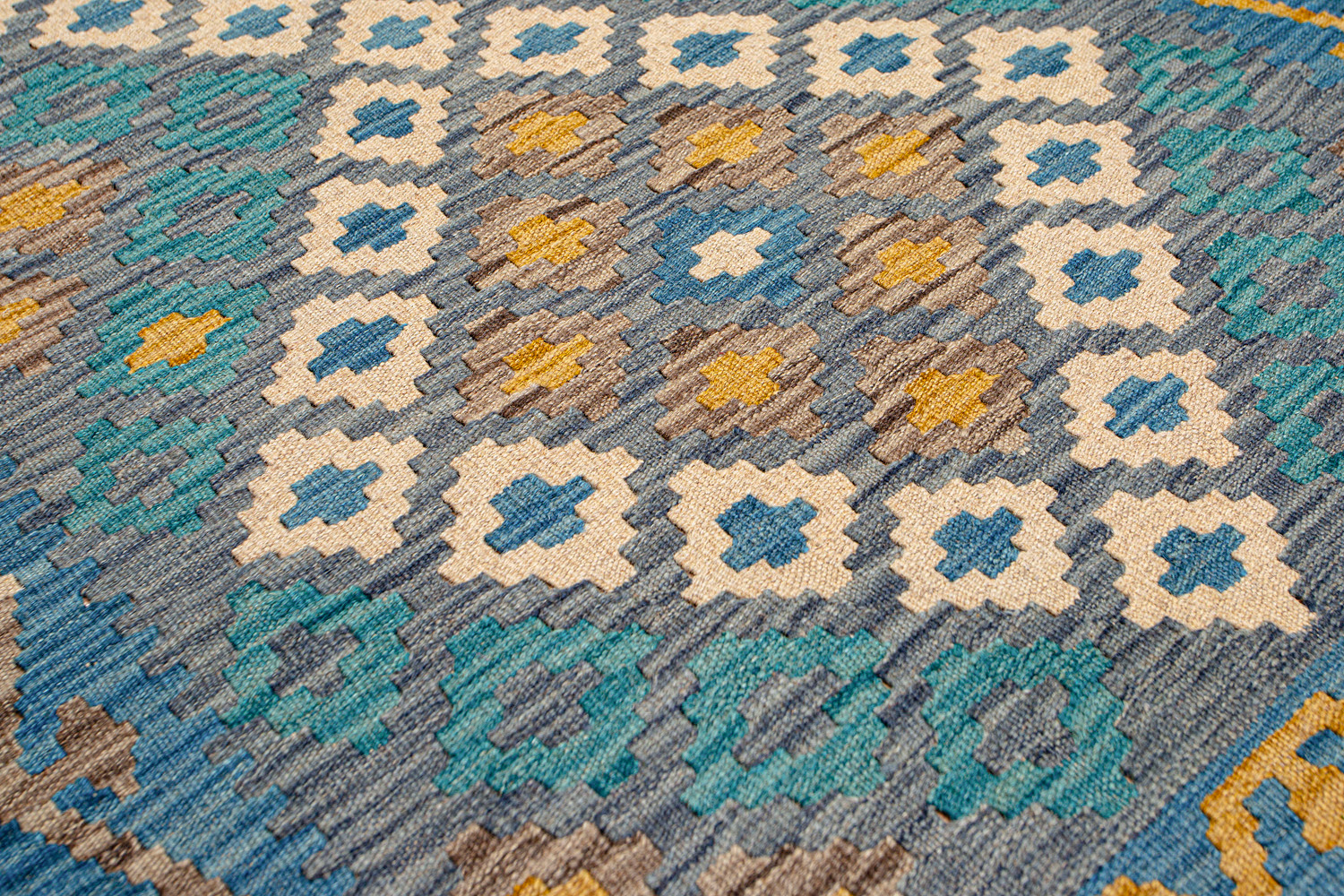 Узор ковров из коллекции Килим создаётся взаимодействием нитей утока и нитей основы, благодаря чему получается геометрический узор.