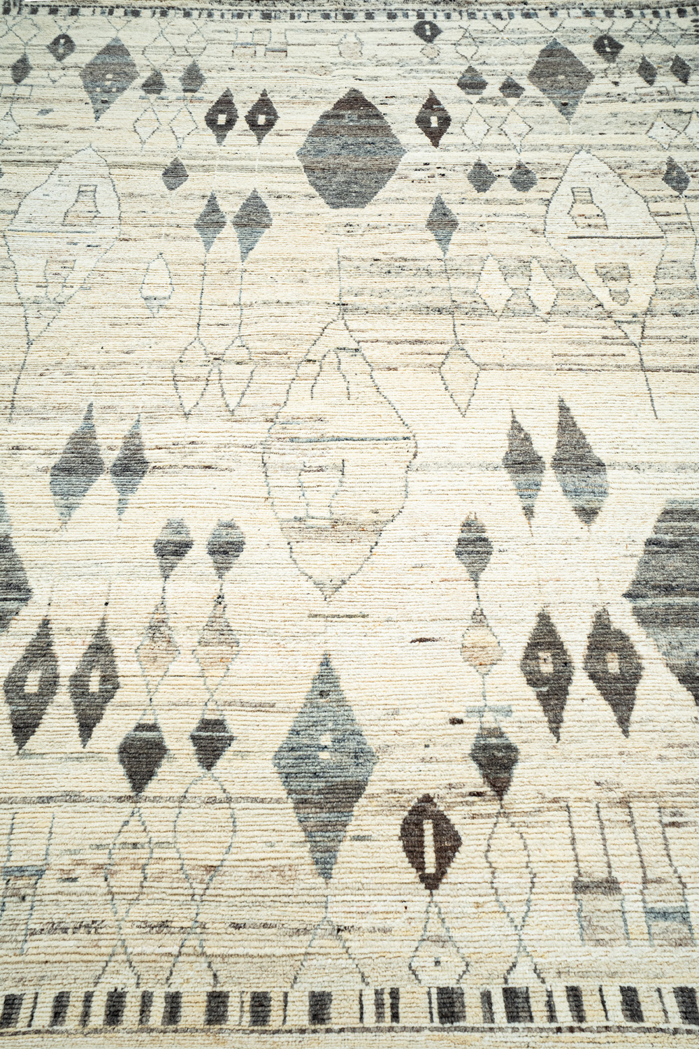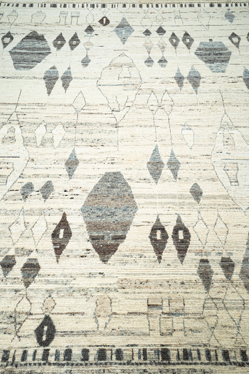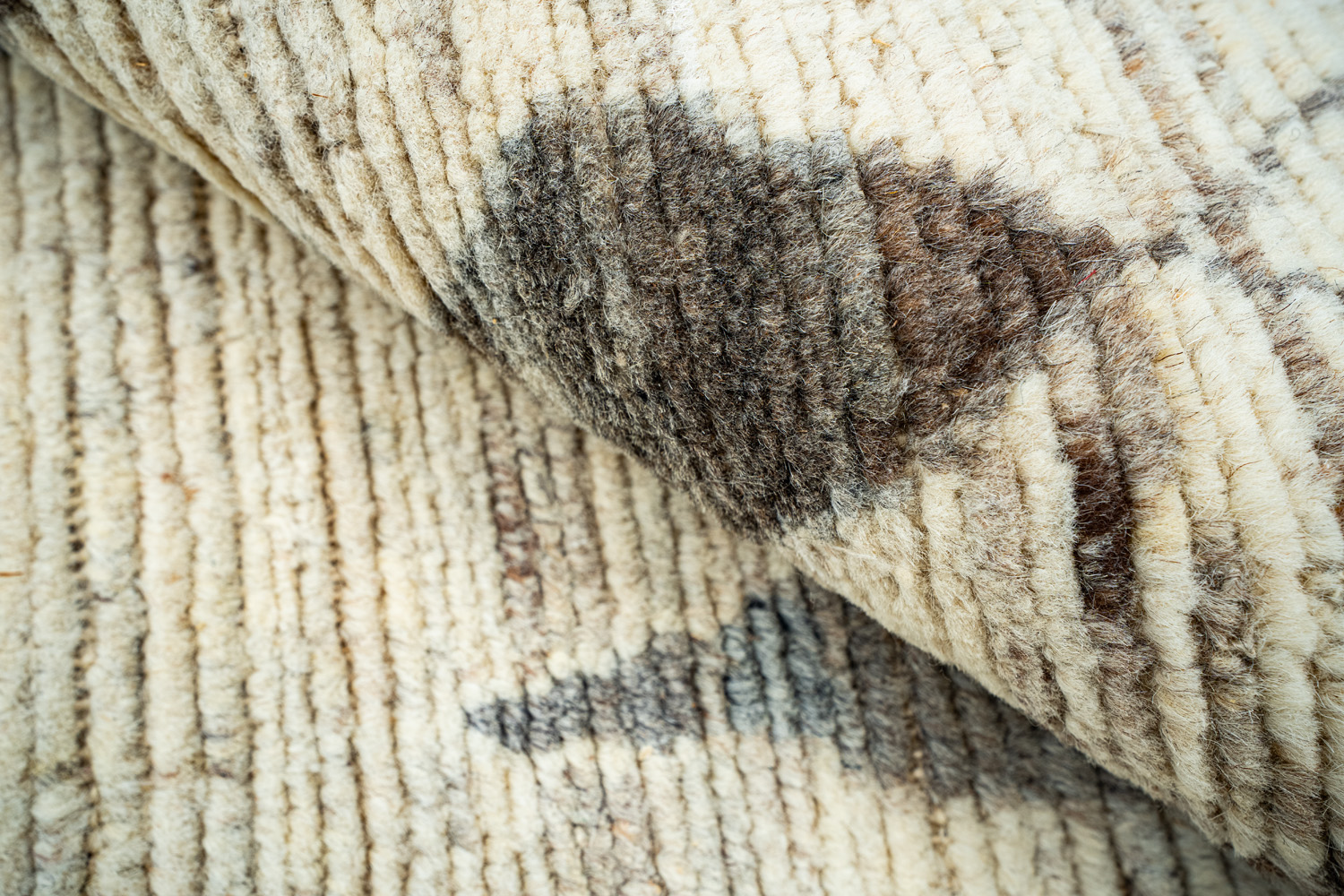 Дизайн ковров напоминает современные полотна художников-абстракционистов и производит столь же яркое и незабываемое впечатление в интерьере. Живописный эффект и необычная фактура зависят от выбора материала: натуральной шерсти, шёлка и от их сочетаний друг с другом. Ковры ткутся вручную в лучших мастерских Индии и Пакистана.