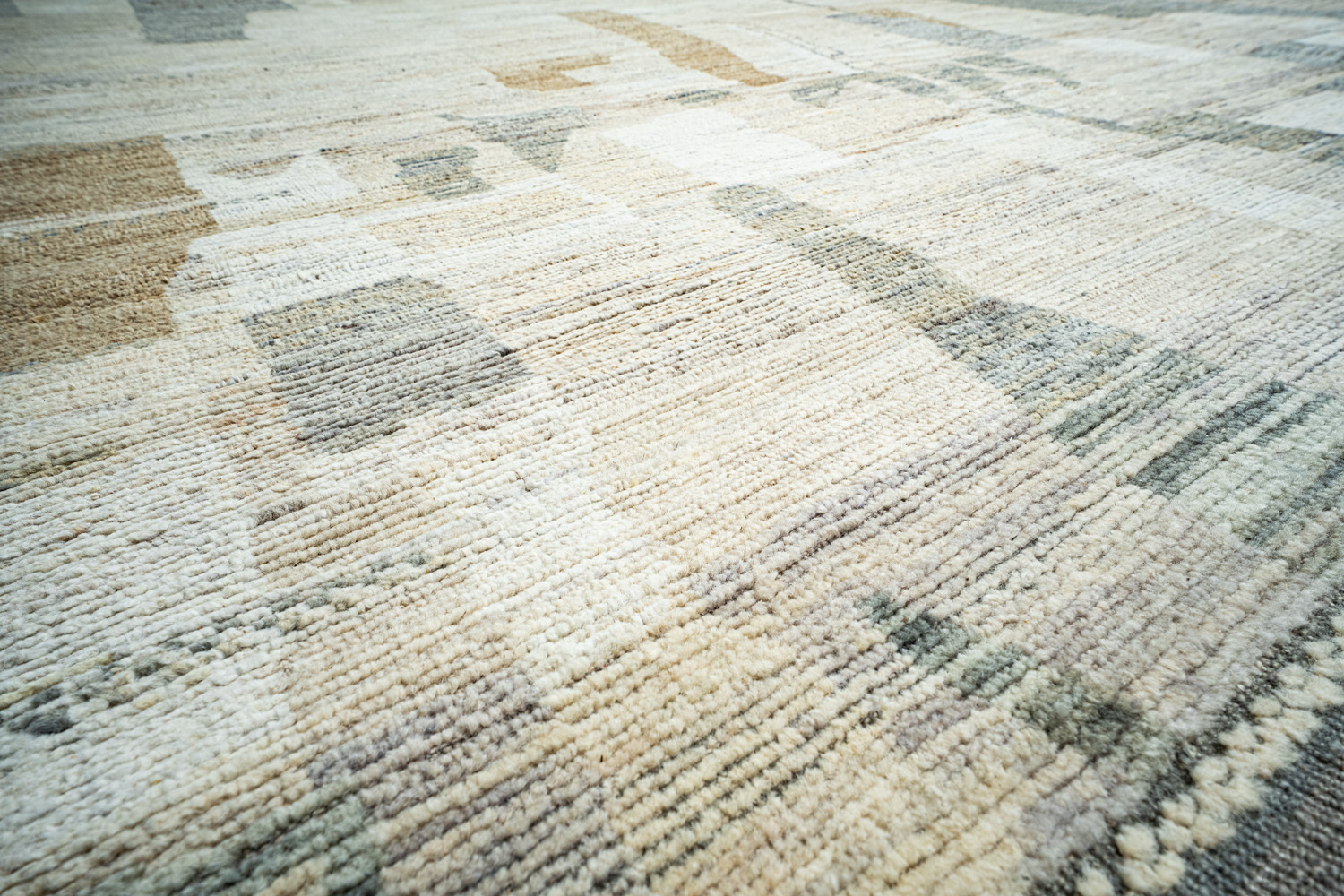 Крупные рисунки в виде линий и фигур на фактурной поверхности ковра превращаются в выразительные композиции. Они акцентируют на себе внимание и добавляют динамики в современный интерьер. Комбинации разных фигур и повторяющийся орнамент задают ритмическую основу пространству, привносят в него оригинальные оптические иллюзии.