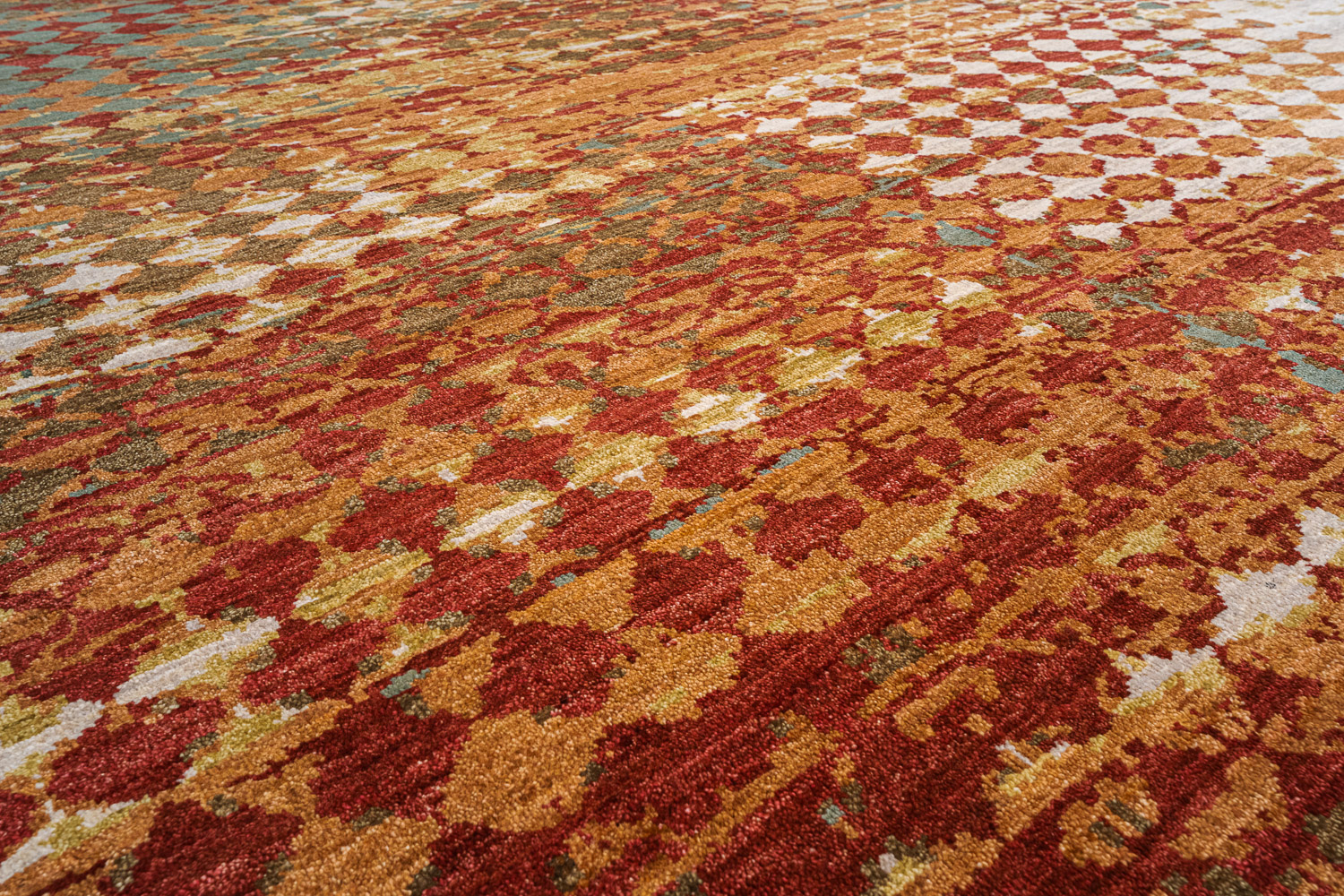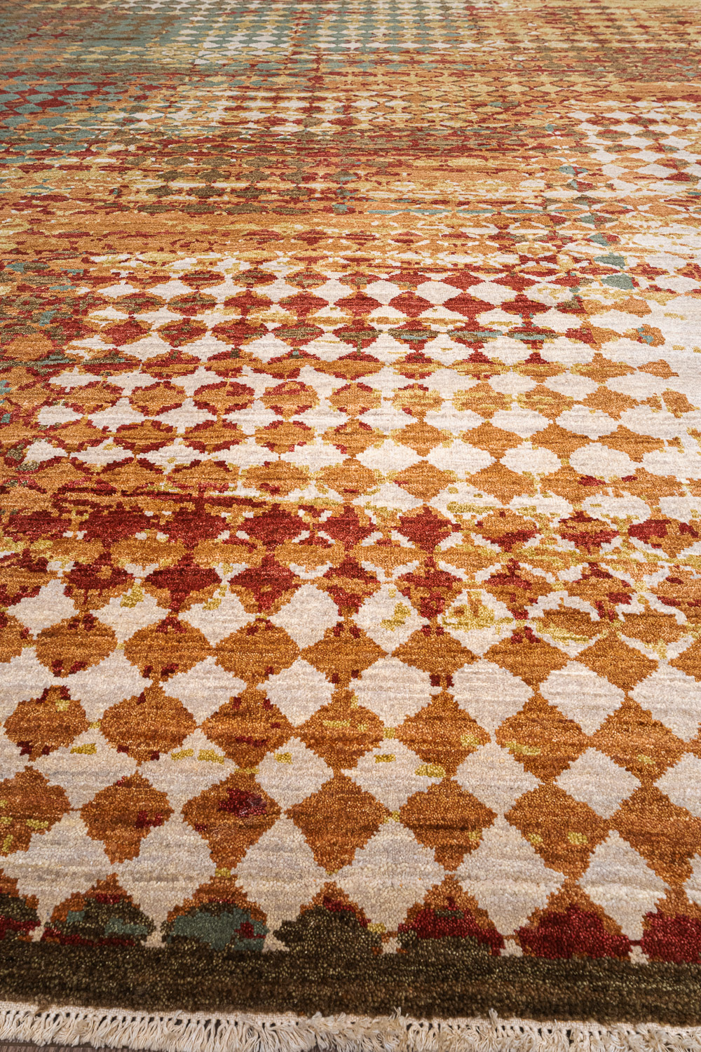 Дизайн ковров напоминает современные полотна художников-абстракционистов и производит столь же яркое и незабываемое впечатление в интерьере. Живописный эффект и необычная фактура зависят от выбора материала: натуральной шерсти, шёлка и от их сочетаний друг с другом. Ковры ткутся вручную в лучших мастерских Индии и Пакистана.