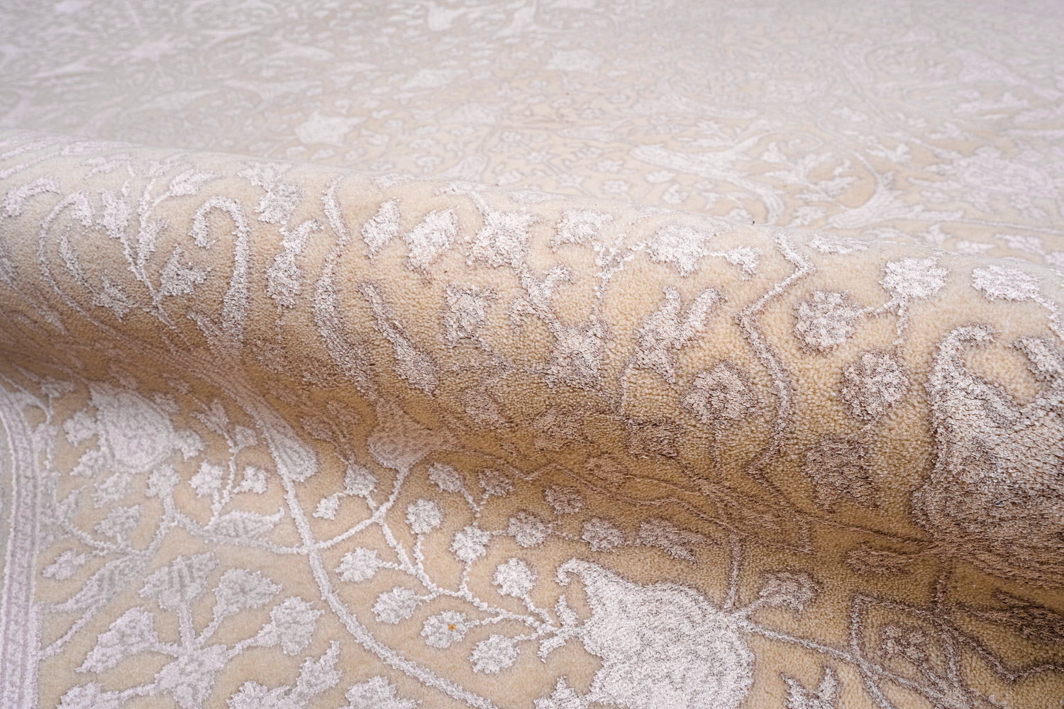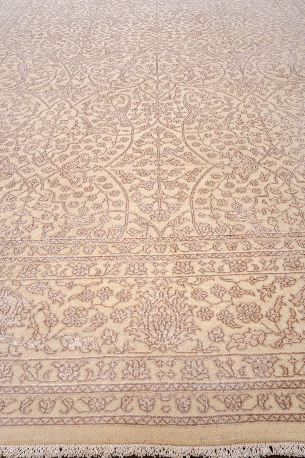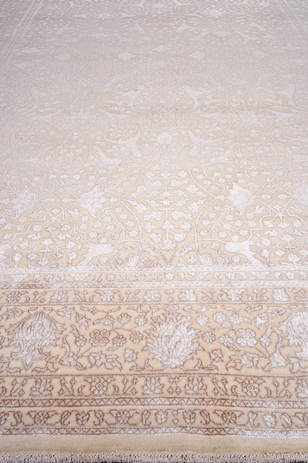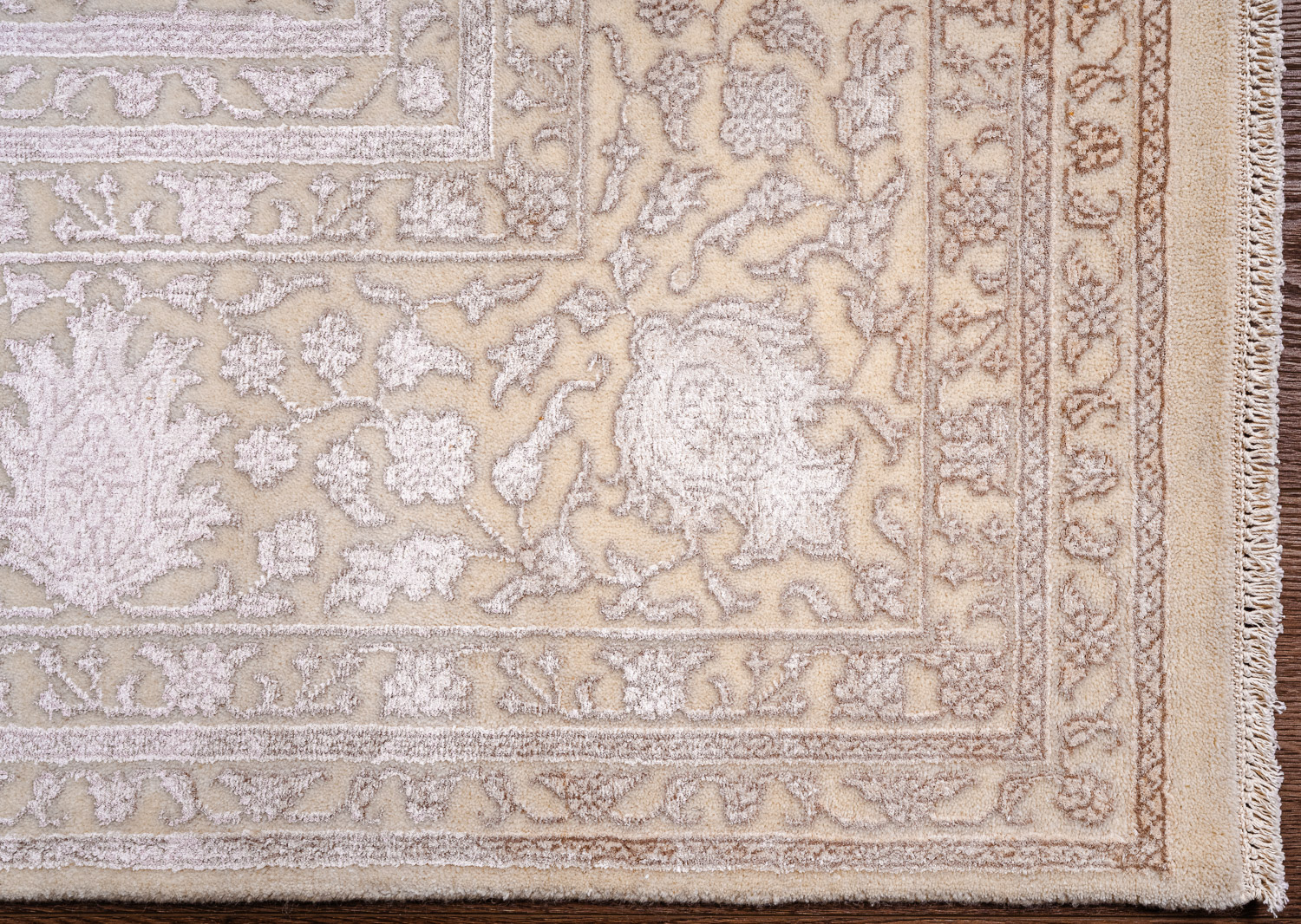 Каждый ковер в этой коллекции соткан вручную из шерсти и арт шёлка опытными индийскими мастерами.