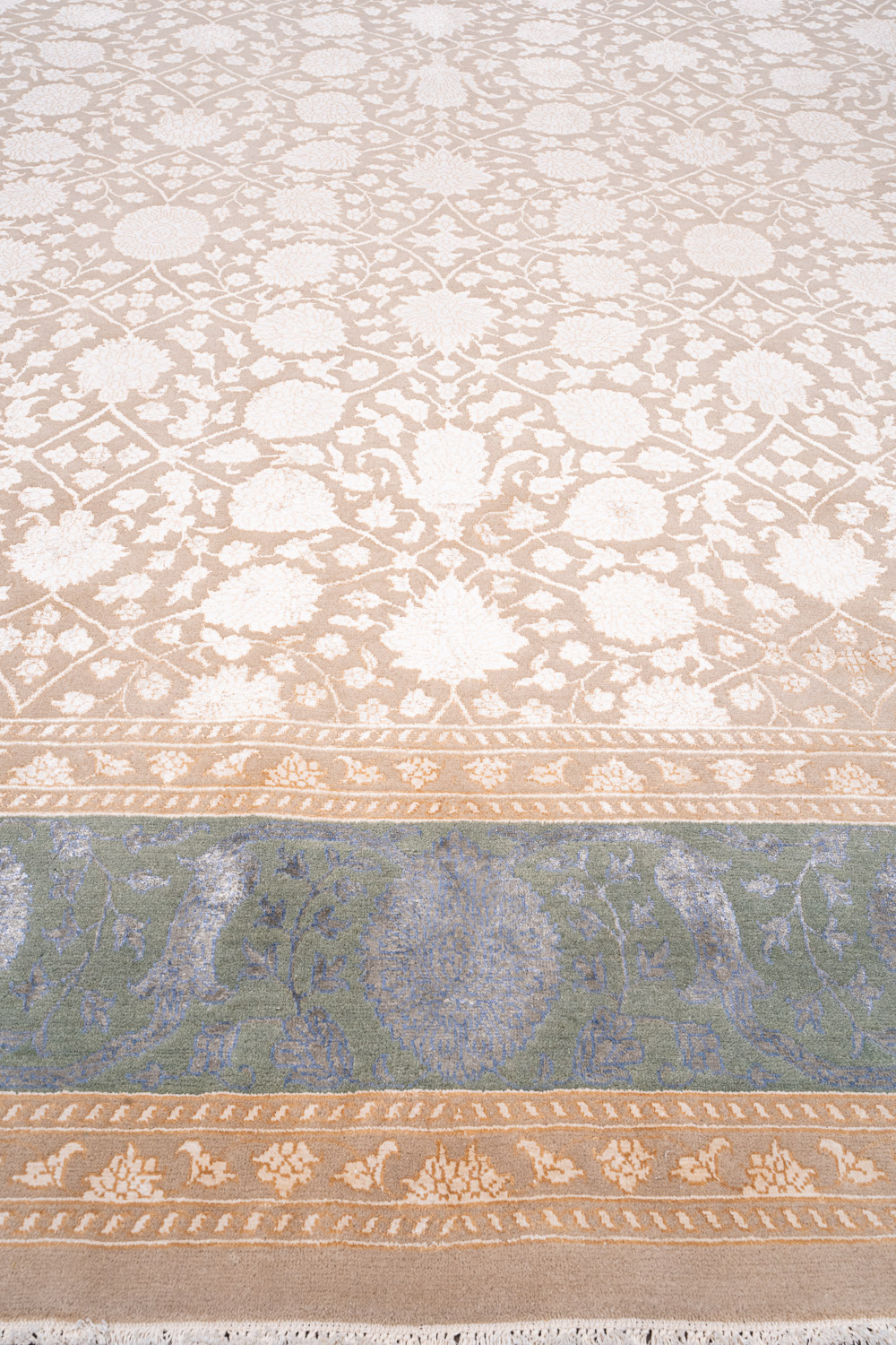 Каждый ковер в этой коллекции соткан вручную из шерсти и арт шёлка опытными индийскими мастерами.