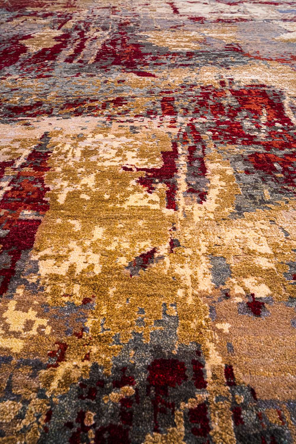 Дизайн ковров напоминает современные полотна художников-абстракционистов и производит столь же яркое и незабываемое впечатление в интерьере. Живописный эффект и необычная фактура зависят от выбора материала: натуральной шерсти, шёлка и от их сочетаний друг с другом. Ковры ткутся вручную в лучших мастерских Индии и Пакистана.