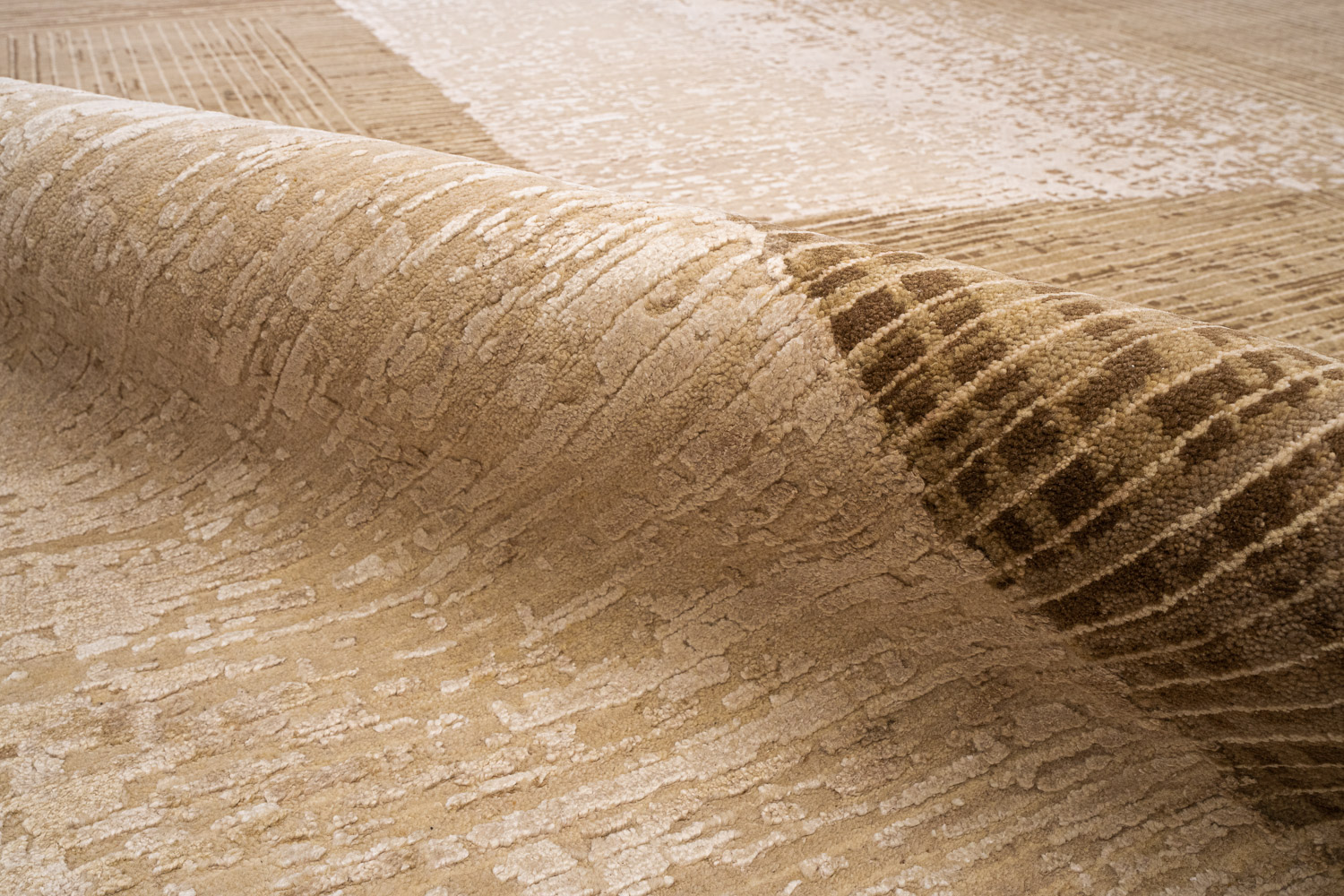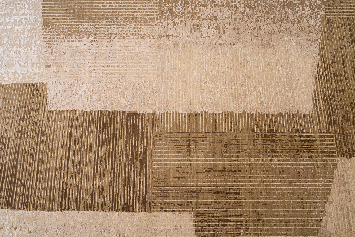 Дизайн ковров напоминает современные полотна художников-абстракционистов и производит столь же яркое и незабываемое впечатление в интерьере. Живописный эффект и необычная фактура зависят от выбора материала: натуральной шерсти, шёлка и от их сочетаний друг с другом. Ковры ткутся вручную в лучших мастерских Индии и Пакистана.