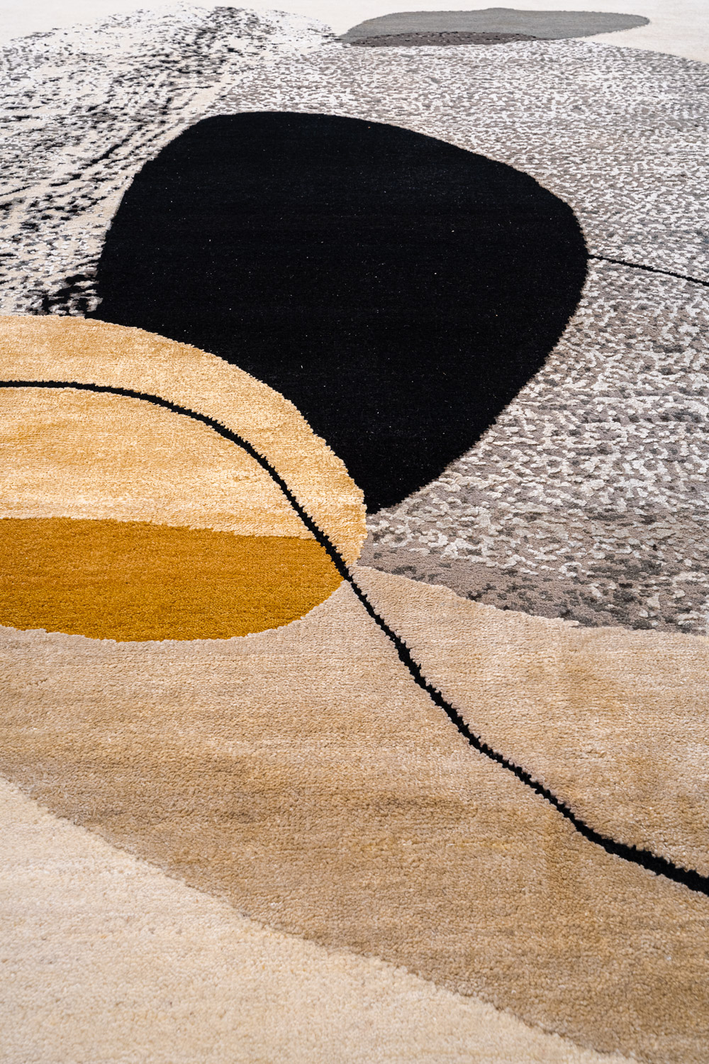 Дизайн ковров напоминает современные полотна художников-абстракционистов и производит столь же яркое и незабываемое впечатление в интерьере. Живописный эффект и необычная фактура зависят от выбора материала: натуральной шерсти, шёлка и от их сочетаний друг с другом. Ковры ткутся вручную в лучших мастерских Индии и Пакистана.