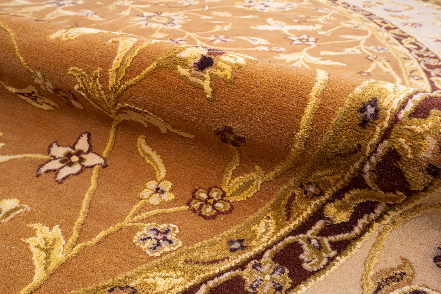 Более пяти веков назад в городе Агра зародилась знаменитая индийская школа ковроткачества, прославившаяся не меньше, чем расположенный здесь же Тадж-Махал. Мощное персидское влияние, помноженное на местный колорит, привело к появлению оригинальных орнаментов с богатыми растительными узорами — причудливым цветам, ветвям и листьям, разбросанным по всему полю ковра.