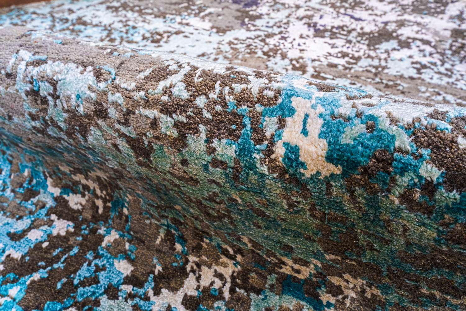 Дизайн ковров напоминает современные полотна художников-абстракционистов и производит столь же яркое и незабываемое впечатление в интерьере. Живописный эффект и необычная фактура зависят от выбора материала: натуральной шерсти, шёлка и от их сочетаний друг с другом. Ковры ткутся вручную в лучших мастерских Индии и Пакистана.