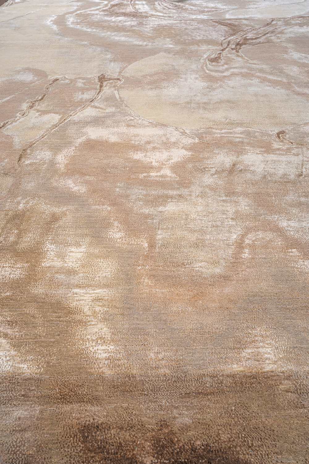 Дизайн ковров напоминает современные полотна художников-абстракционистов и производит столь же яркое и незабываемое впечатление в интерьере. Живописный эффект и необычная фактура зависят от выбора материала: натуральной шерсти, шёлка и от их сочетаний друг с другом. Ковры ткутся вручную в лучших мастерских Индии и Пакистана.