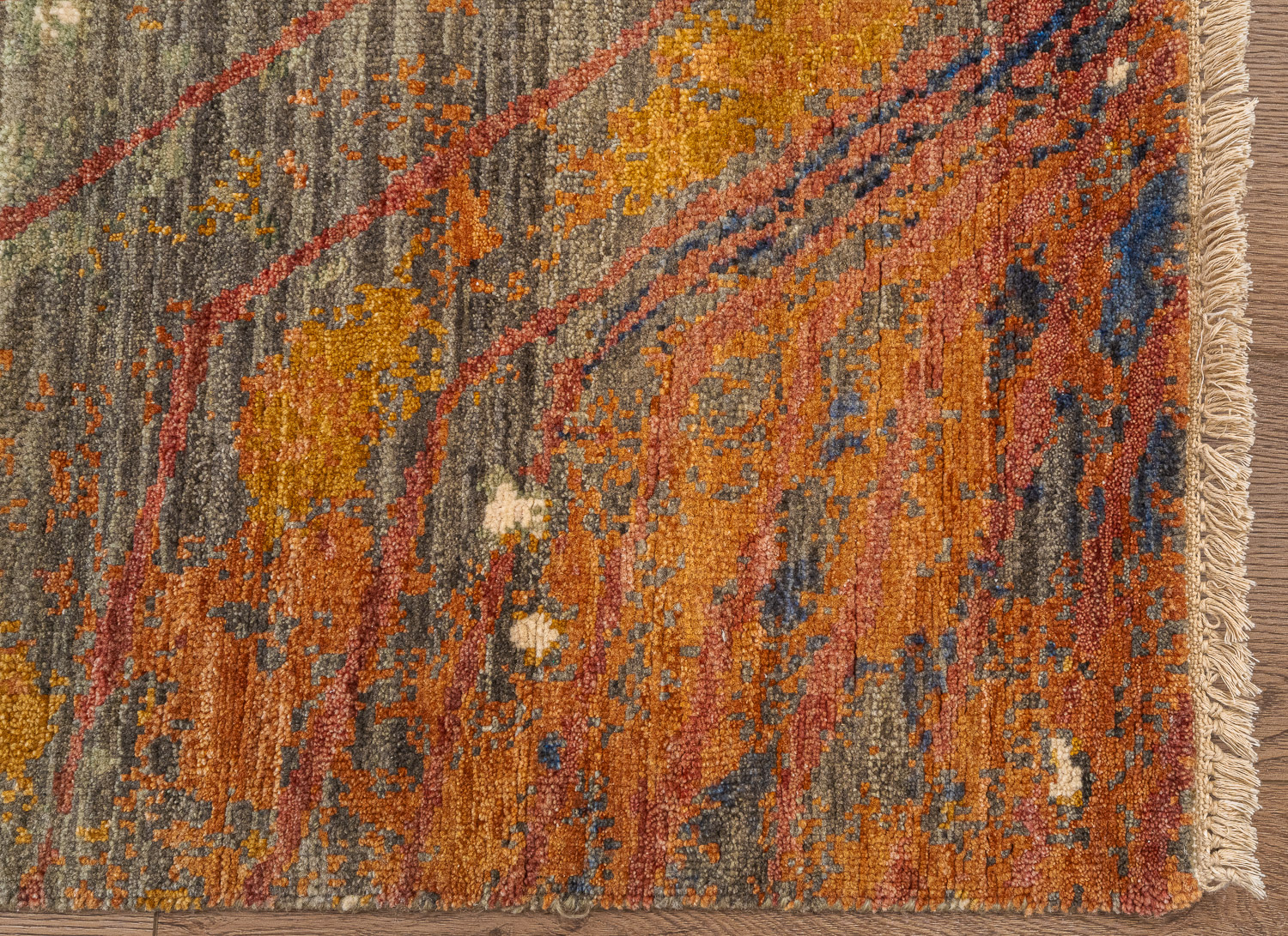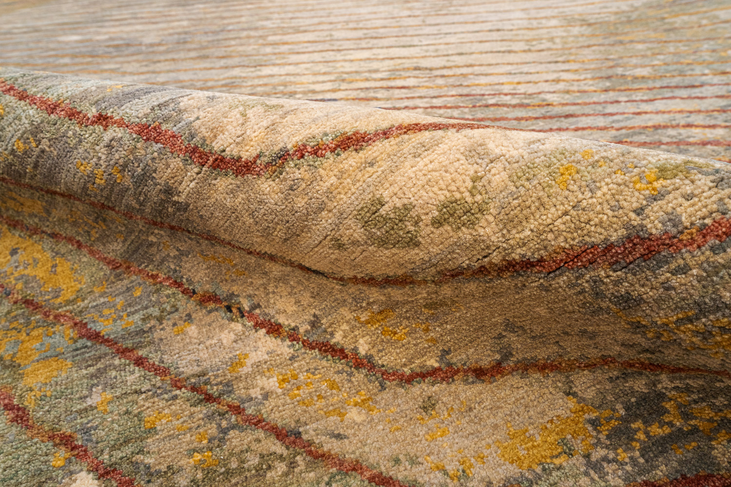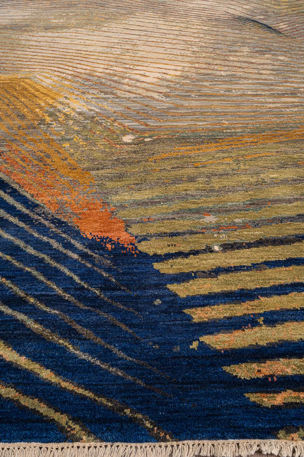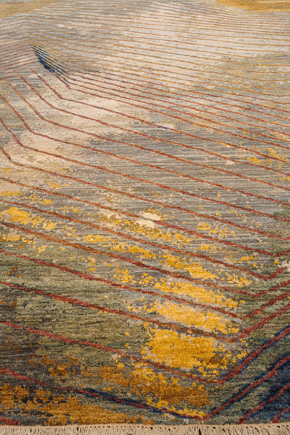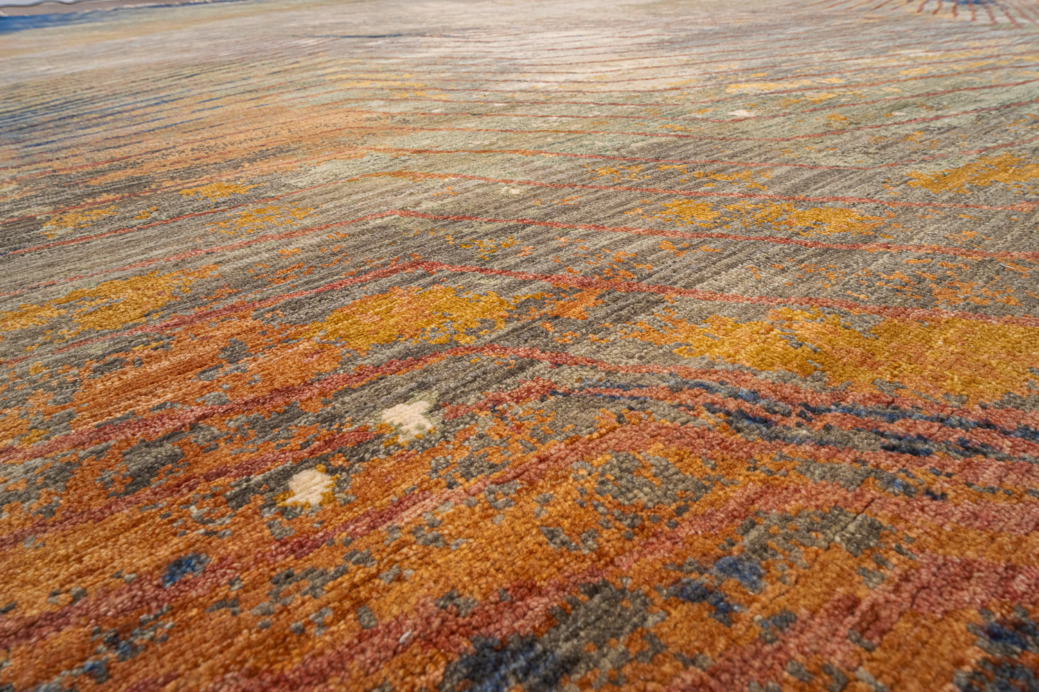 Дизайн ковров напоминает современные полотна художников-абстракционистов и производит столь же яркое и незабываемое впечатление в интерьере. Живописный эффект и необычная фактура зависят от выбора материала: натуральной шерсти, шёлка и от их сочетаний друг с другом. Ковры ткутся вручную в лучших мастерских Индии и Пакистана.
