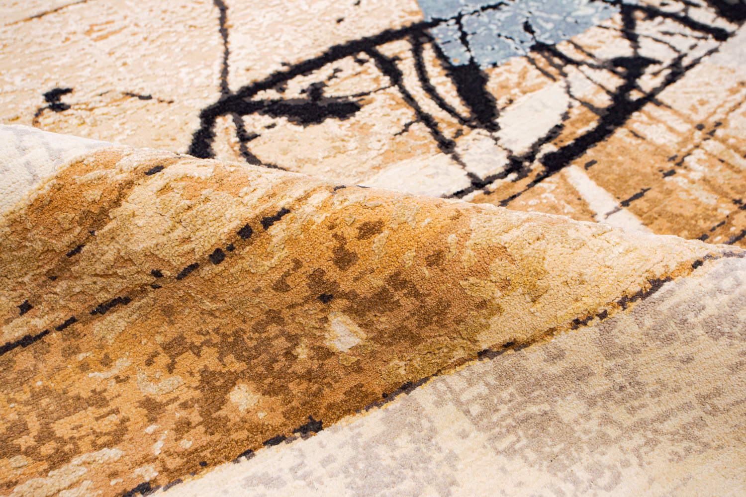 Дизайн ковров напоминает современные полотна художников-абстракционистов и производит столь же яркое и незабываемое впечатление в интерьере. Живописный эффект и необычная фактура зависят от выбора материала: натуральной шерсти, шёлка и от их сочетаний друг с другом. Ковры ткутся вручную в лучших мастерских Индии и Пакистана.