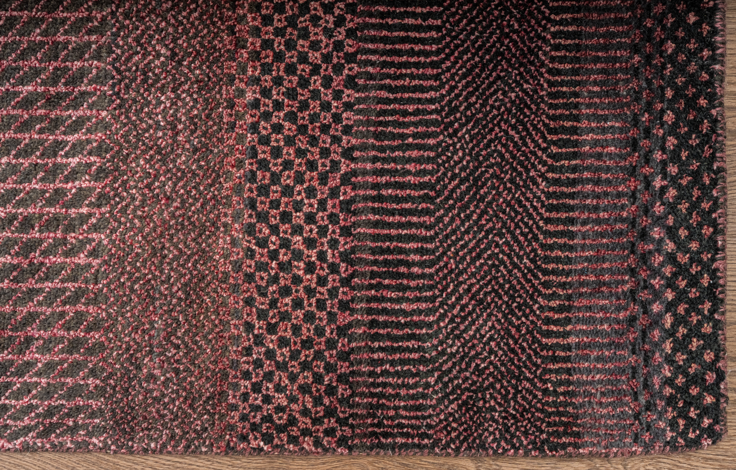 Дизайн ковров напоминает современные полотна художников-абстракционистов и производит столь же яркое и незабываемое впечатление в интерьере. Живописный эффект и необычная фактура зависят от выбора материала: натуральной шерсти, шёлка и от их сочетаний друг с другом. Ковры ткутся вручную в лучших мастерских Индии и Пакистана.