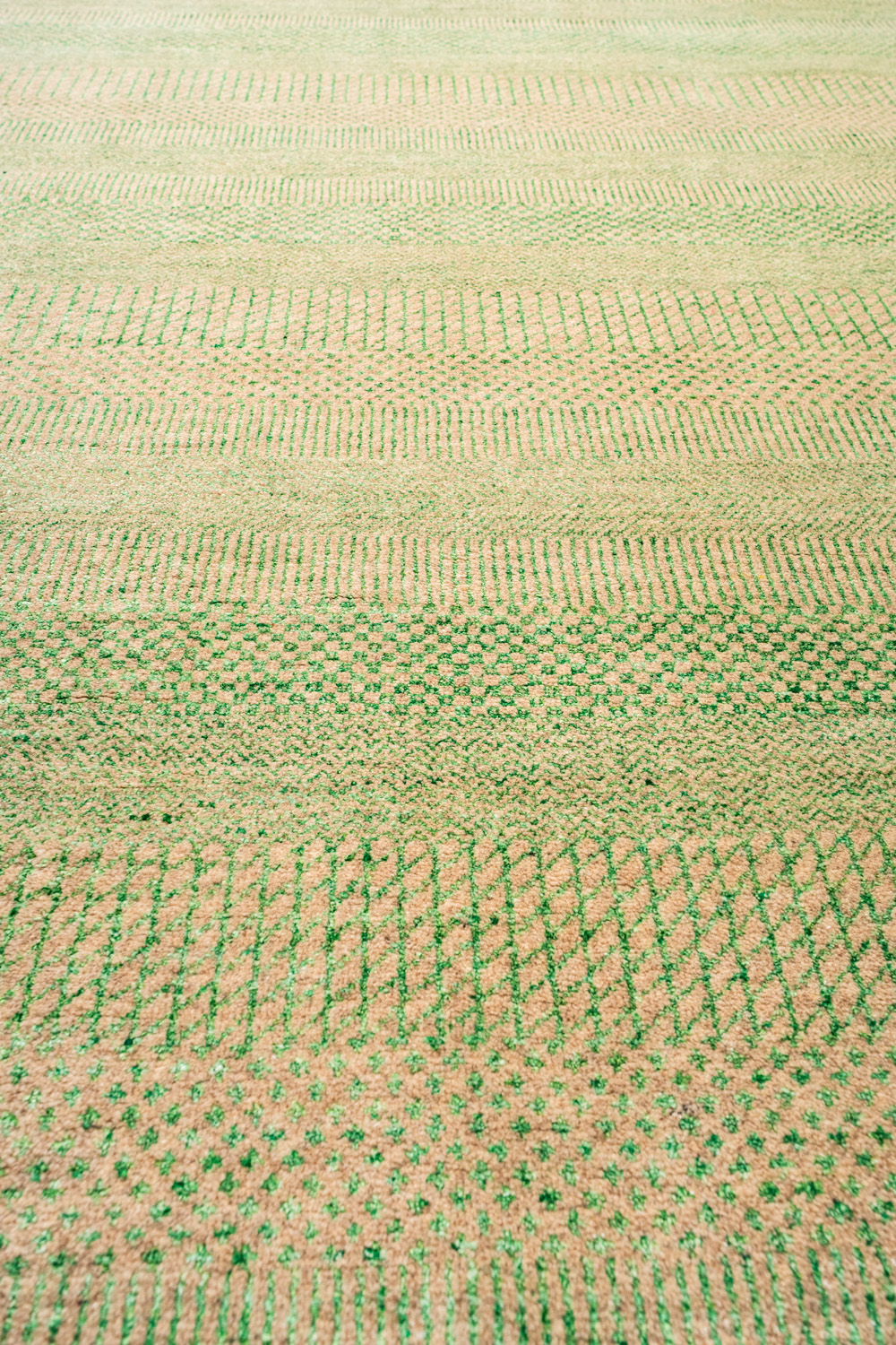 Дизайн ковров напоминает современные полотна художников-абстракционистов и производит столь же яркое и незабываемое впечатление в интерьере. Живописный эффект и необычная фактура зависят от выбора материала: натуральной шерсти, шёлка и от их сочетаний друг с другом. Ковры ткутся вручную в лучших мастерских Индии и Пакистана.