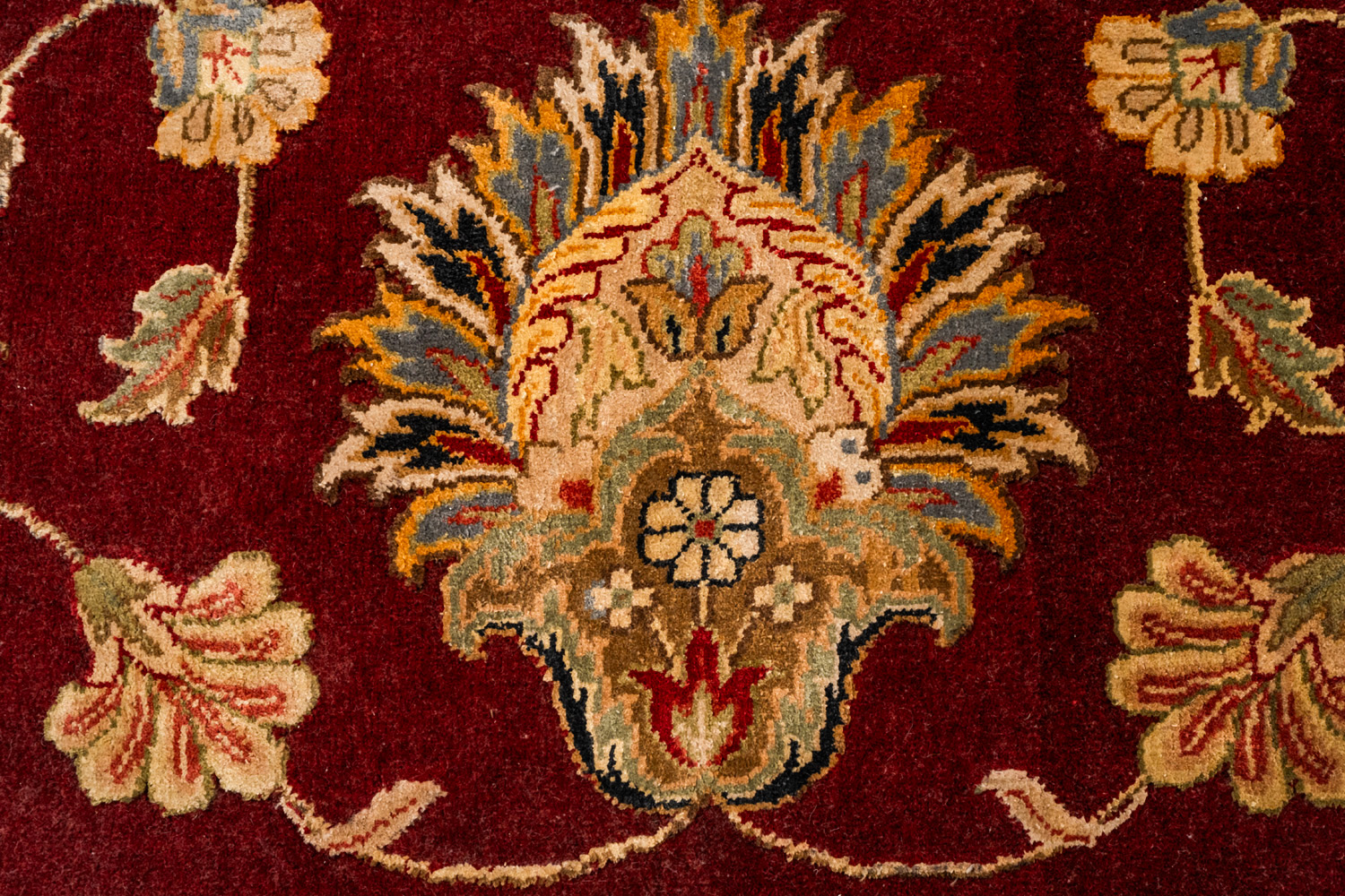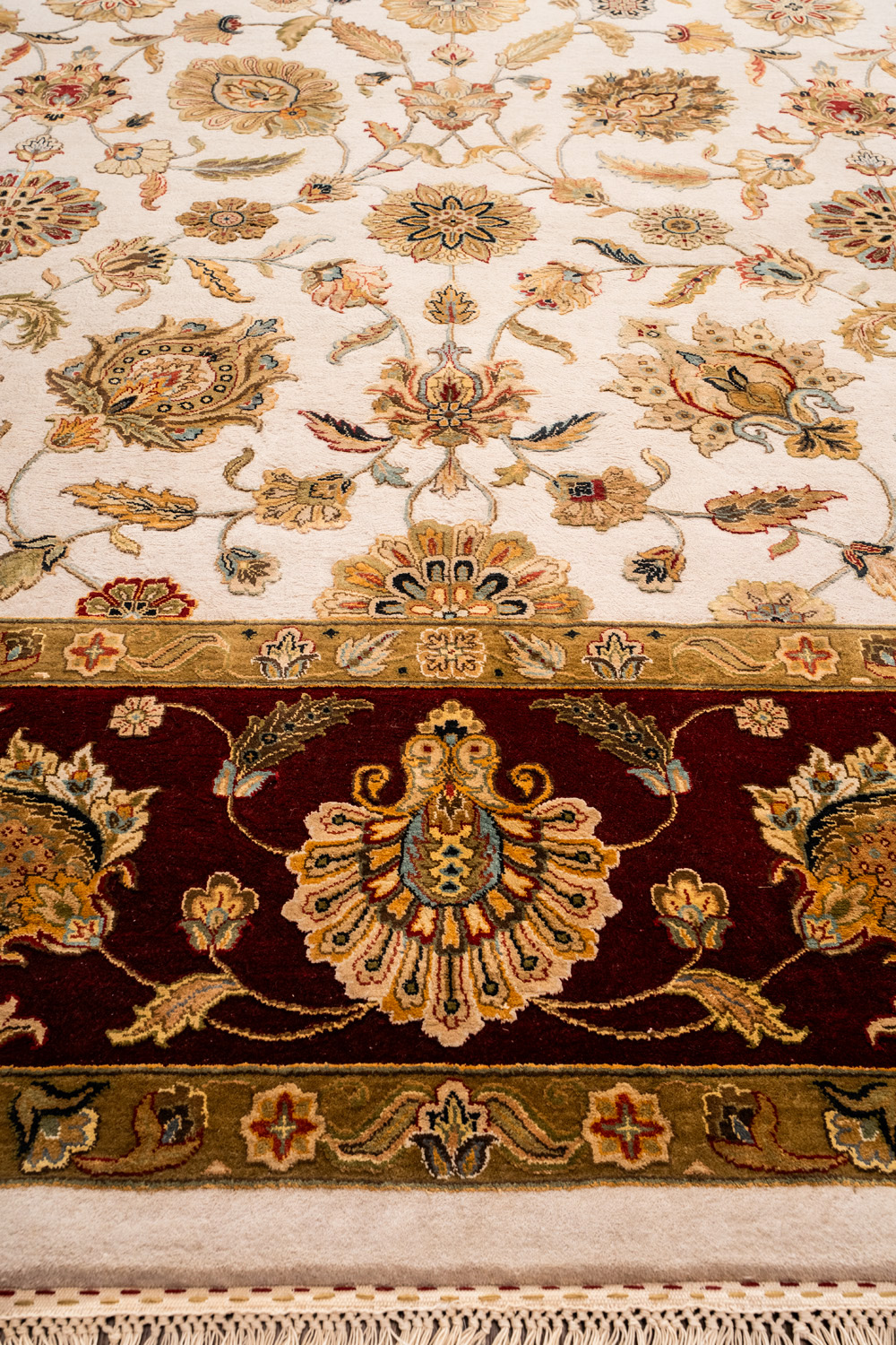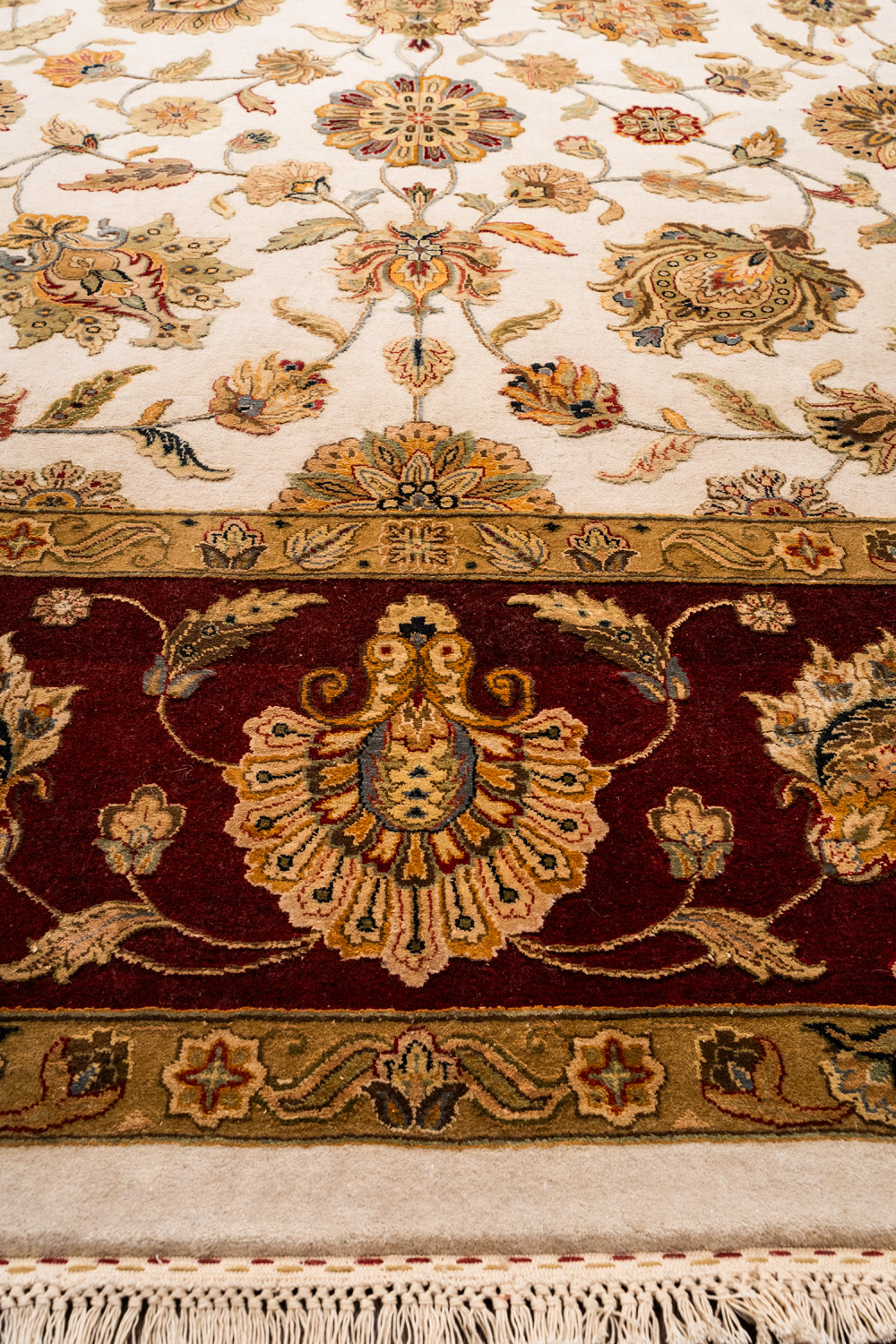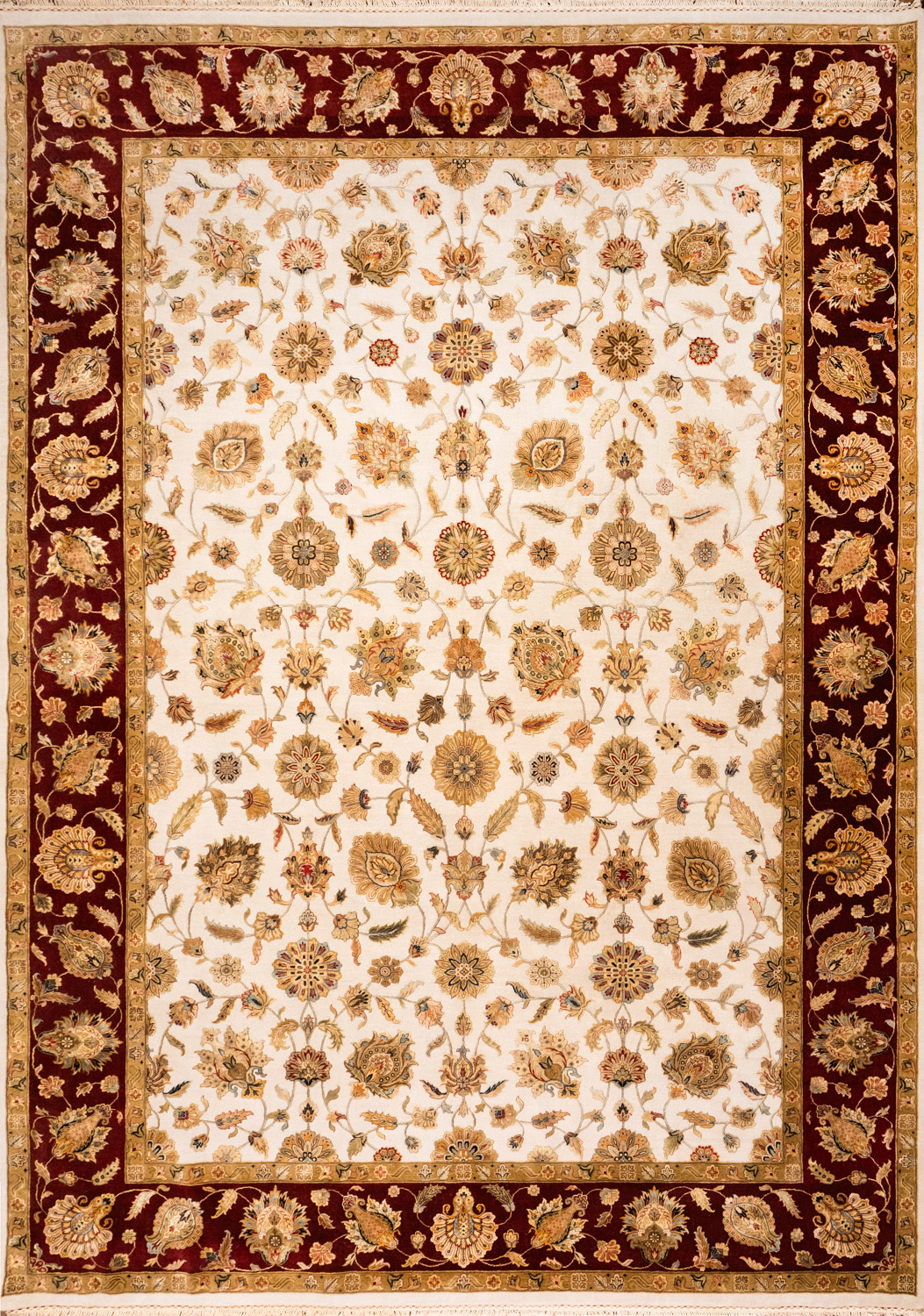 Более пяти веков назад в городе Агра зародилась знаменитая индийская школа ковроткачества, прославившаяся не меньше, чем расположенный здесь же Тадж-Махал. Мощное персидское влияние, помноженное на местный колорит, привело к появлению оригинальных орнаментов с богатыми растительными узорами — причудливым цветам, ветвям и листьям, разбросанным по всему полю ковра.