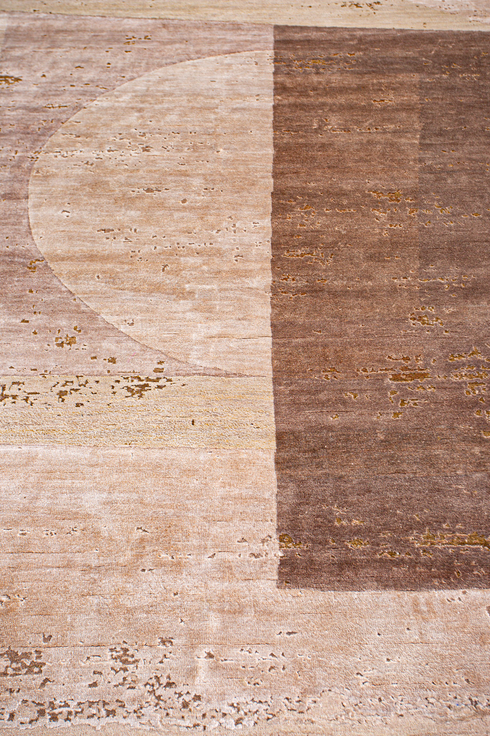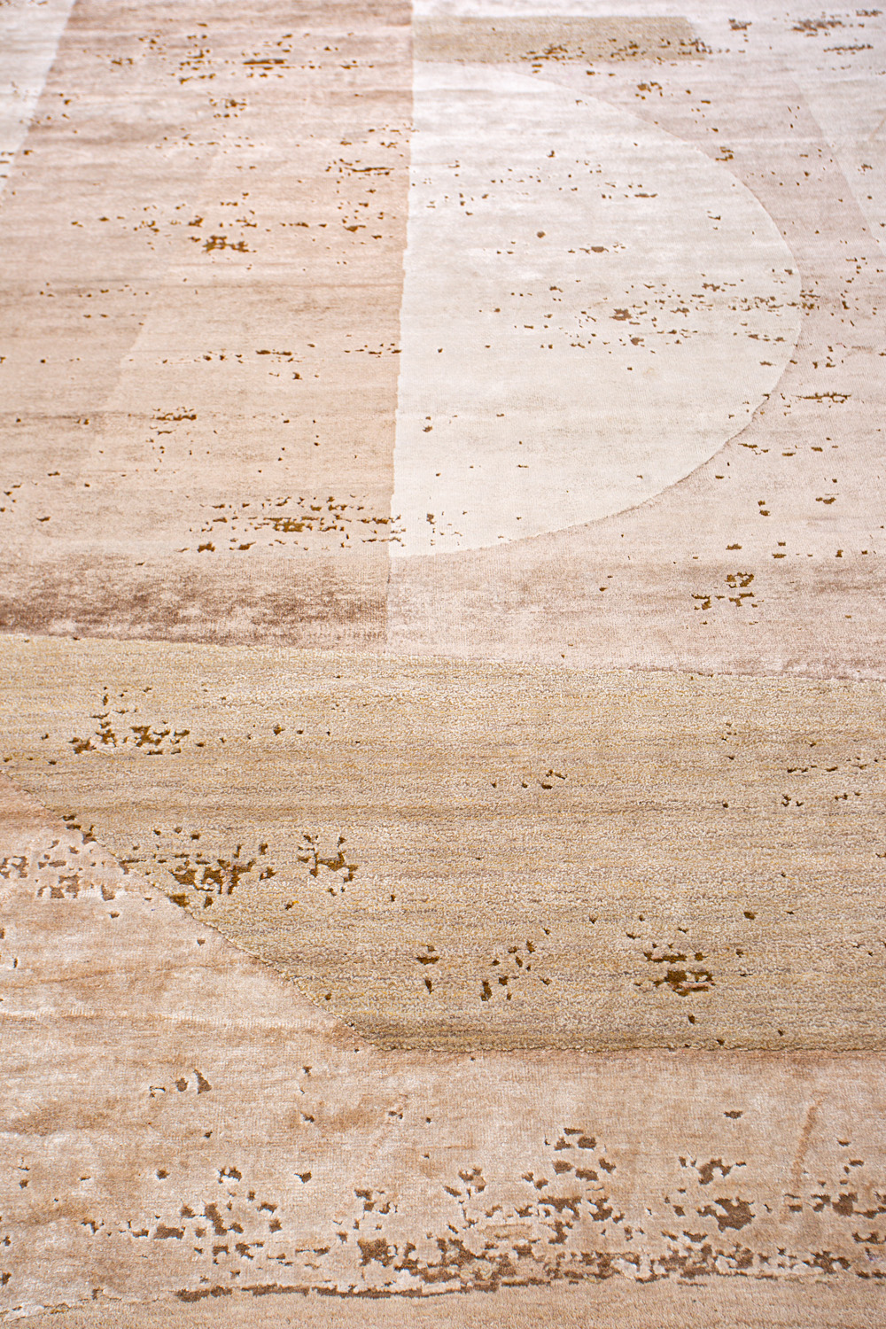 Дизайн ковров напоминает современные полотна художников-абстракционистов и производит столь же яркое и незабываемое впечатление в интерьере. Живописный эффект и необычная фактура зависят от выбора материала: натуральной шерсти, шёлка и от их сочетаний друг с другом. Ковры ткутся вручную в лучших мастерских Индии и Пакистана.