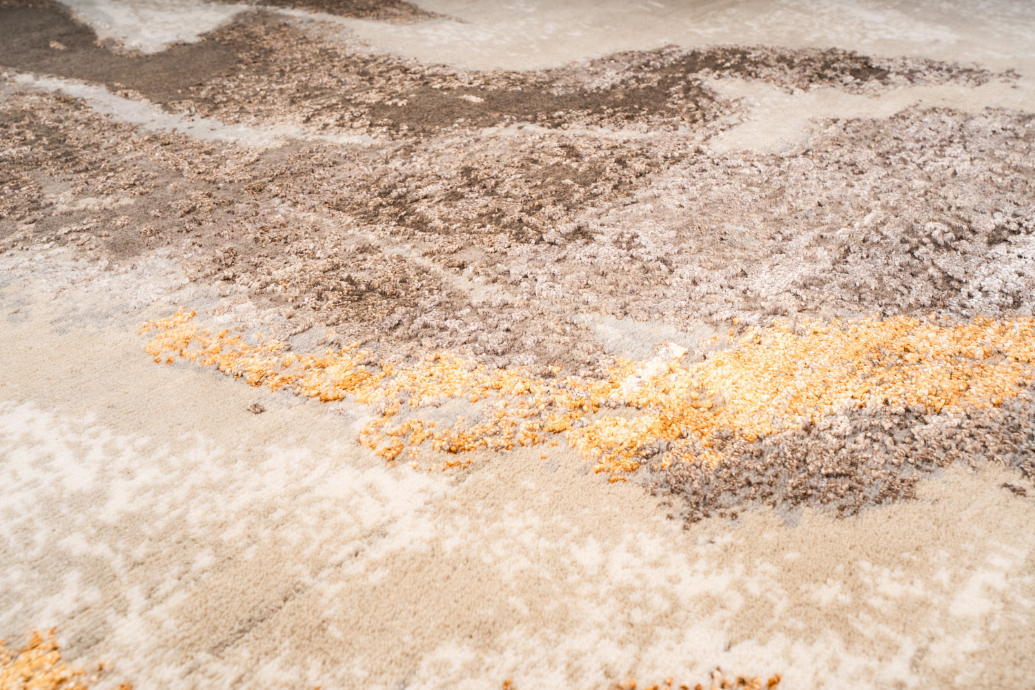 Дизайн ковров напоминает современные полотна художников-абстракционистов и производит столь же яркое и незабываемое впечатление в интерьере. Живописный эффект и необычная фактура зависят от выбора материала: натуральной шерсти, шёлка и от их сочетаний друг с другом. Ковры ткутся вручную в лучших мастерских Индии и Пакистана.