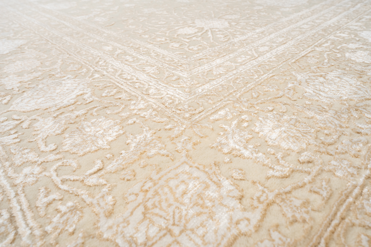 Каждый ковер в этой коллекции соткан вручную из шерсти и арт шёлка опытными индийскими мастерами.