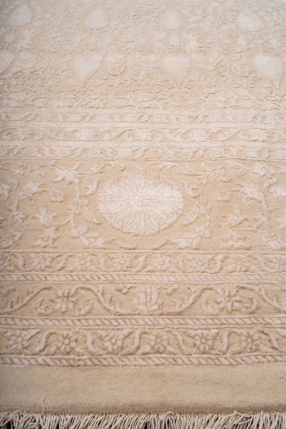 Более пяти веков назад в городе Агра зародилась знаменитая индийская школа ковроткачества, прославившаяся не меньше, чем расположенный здесь же Тадж-Махал. Мощное персидское влияние, помноженное на местный колорит, привело к появлению оригинальных орнаментов с богатыми растительными узорами — причудливым цветам, ветвям и листьям, разбросанным по всему полю ковра.