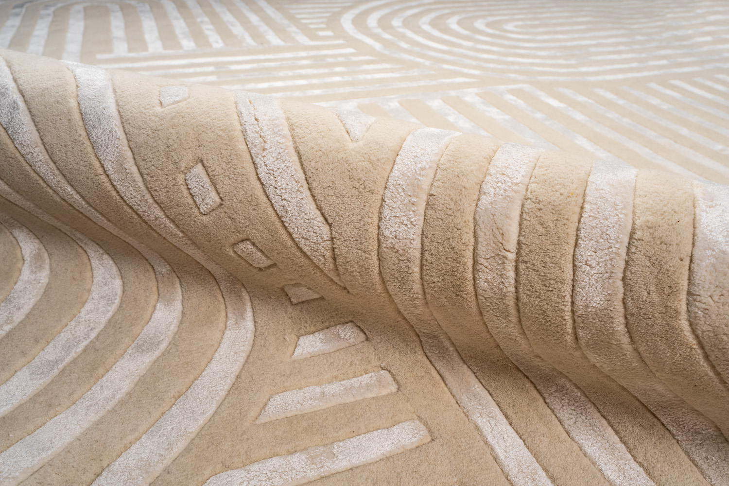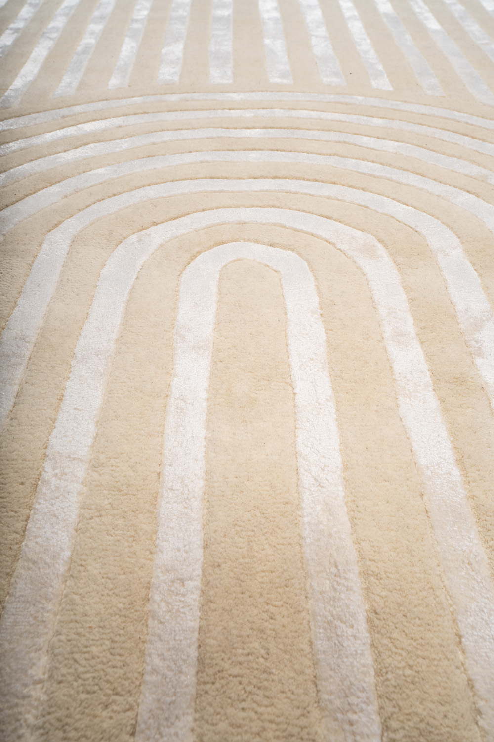 Ковры изготовлены методом ручного тафтинга. Эта технология позволяет создавать объемный рисунок и мягкие переходы цвета. Почитатели коллекции Shine ценят богатую фактуру ковров в сочетании с натуральными материалами и превосходной техникой в исполнении индийских мастеров.