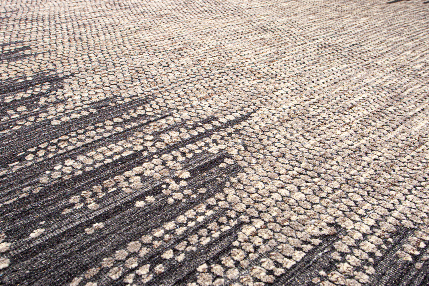 Дизайн ковров напоминает современные полотна художников-абстракционистов и производит столь же яркое и незабываемое впечатление в интерьере. Живописный эффект и необычная фактура зависят от выбора материала: натуральной шерсти, шёлка и от их сочетаний друг с другом. Ковры ткутся вручную в лучших мастерских Индии и Пакистана.