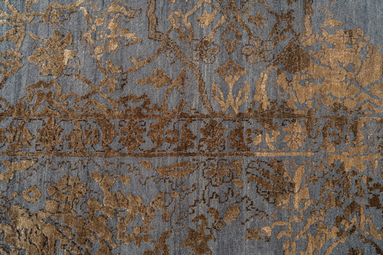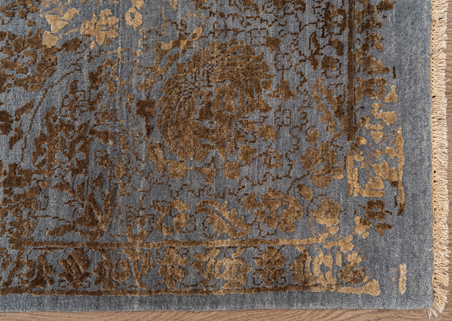 Время и природа — два главных стержня. Впечатление такое, что краски словно стёрлись, а если они и сохраняют яркость, то рисунок сохранился не весь, какие‑то фрагменты утрачены — такова типология этого столь актуального сегодня ковра ручной работы из коллекции illusion.
