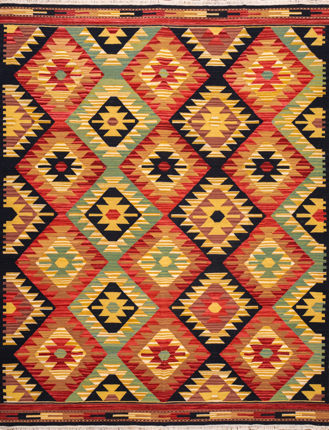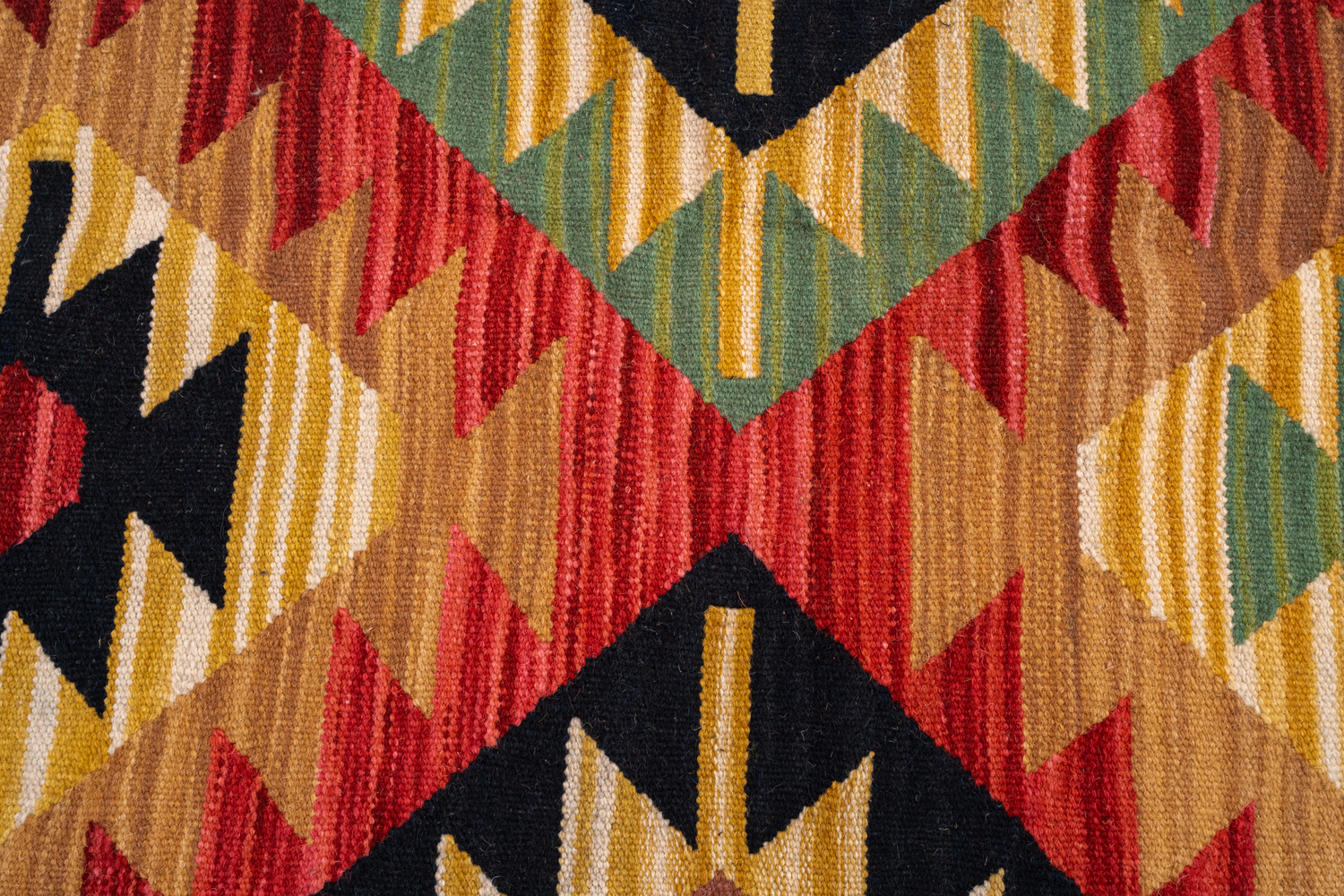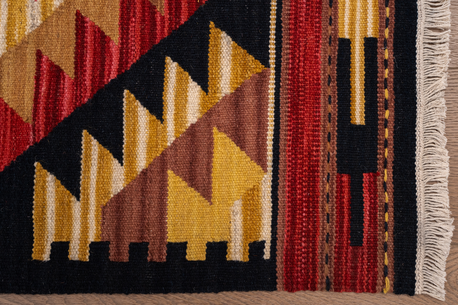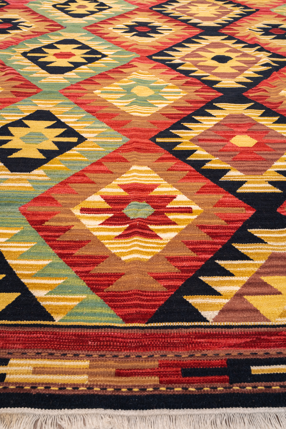 Узор ковров из коллекции Килим создаётся взаимодействием нитей утока и нитей основы, благодаря чему получается геометрический узор.