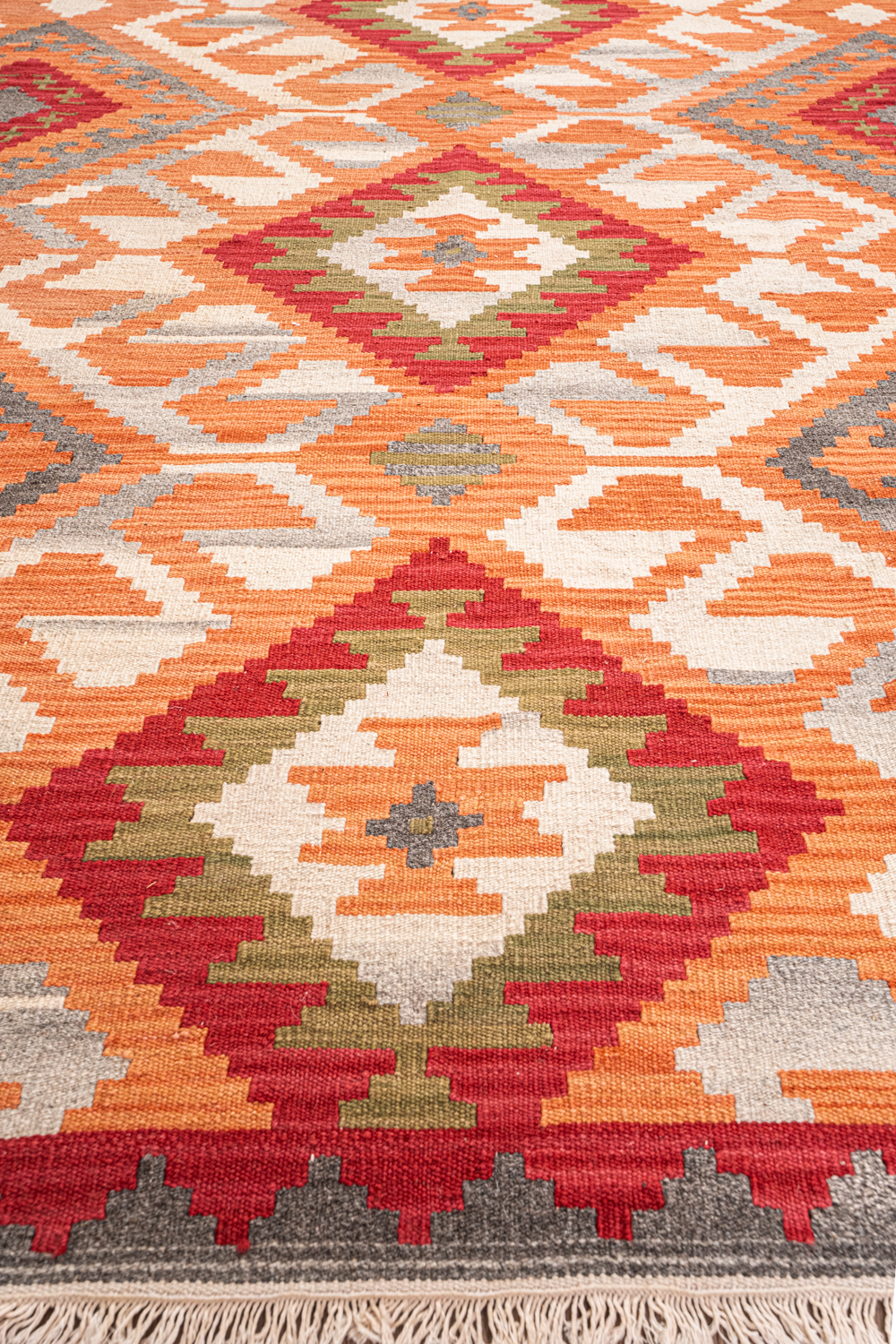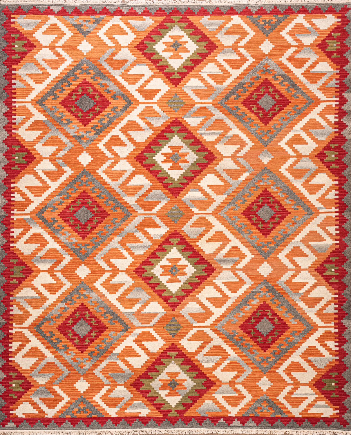 Узор ковров из коллекции Килим создаётся взаимодействием нитей утока и нитей основы, благодаря чему получается геометрический узор.