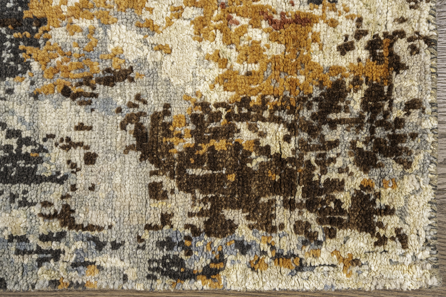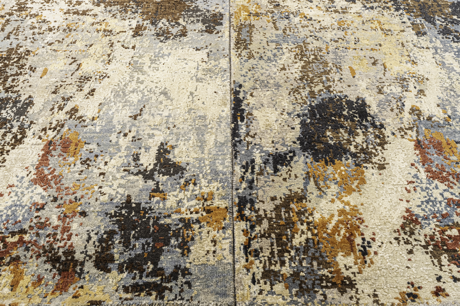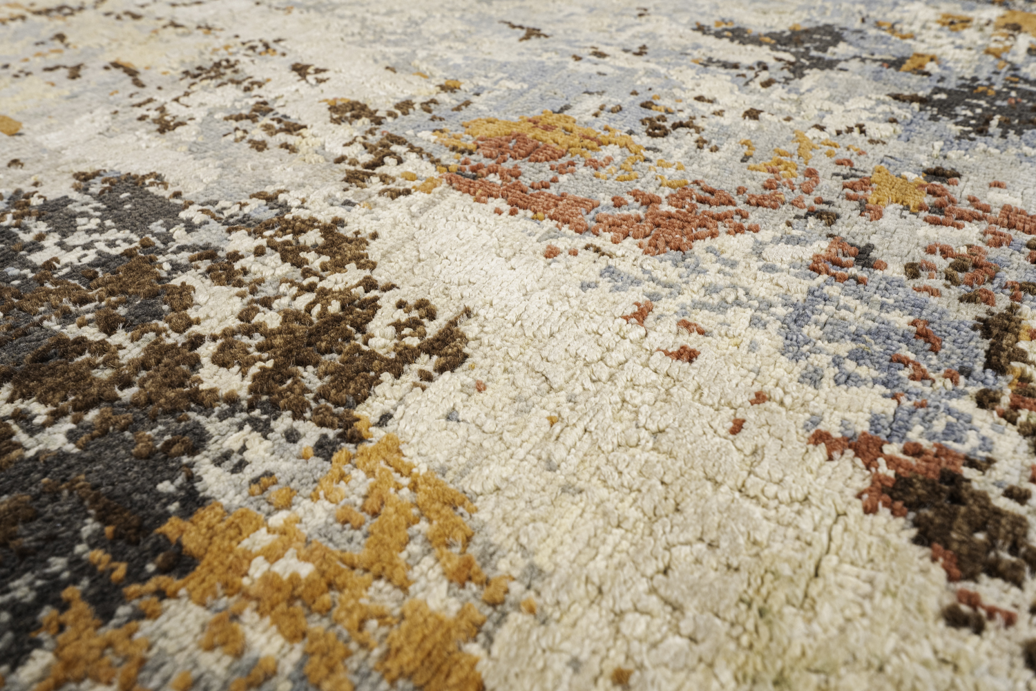 Дизайн ковров напоминает современные полотна художников-абстракционистов и производит столь же яркое и незабываемое впечатление в интерьере. Живописный эффект и необычная фактура зависят от выбора материала: натуральной шерсти, шёлка и от их сочетаний друг с другом. Ковры ткутся вручную в лучших мастерских Индии и Пакистана.