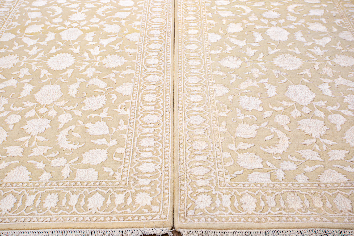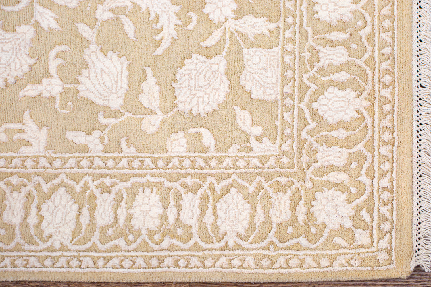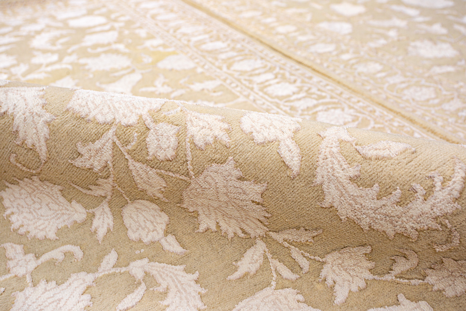 Каждый ковер в этой коллекции соткан вручную из шерсти и арт шёлка опытными индийскими мастерами.