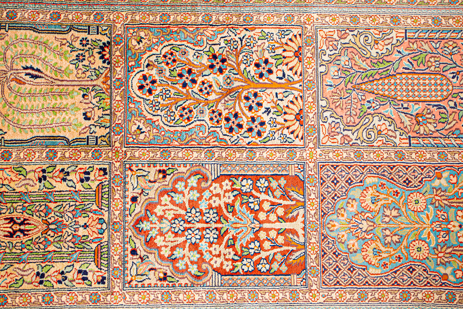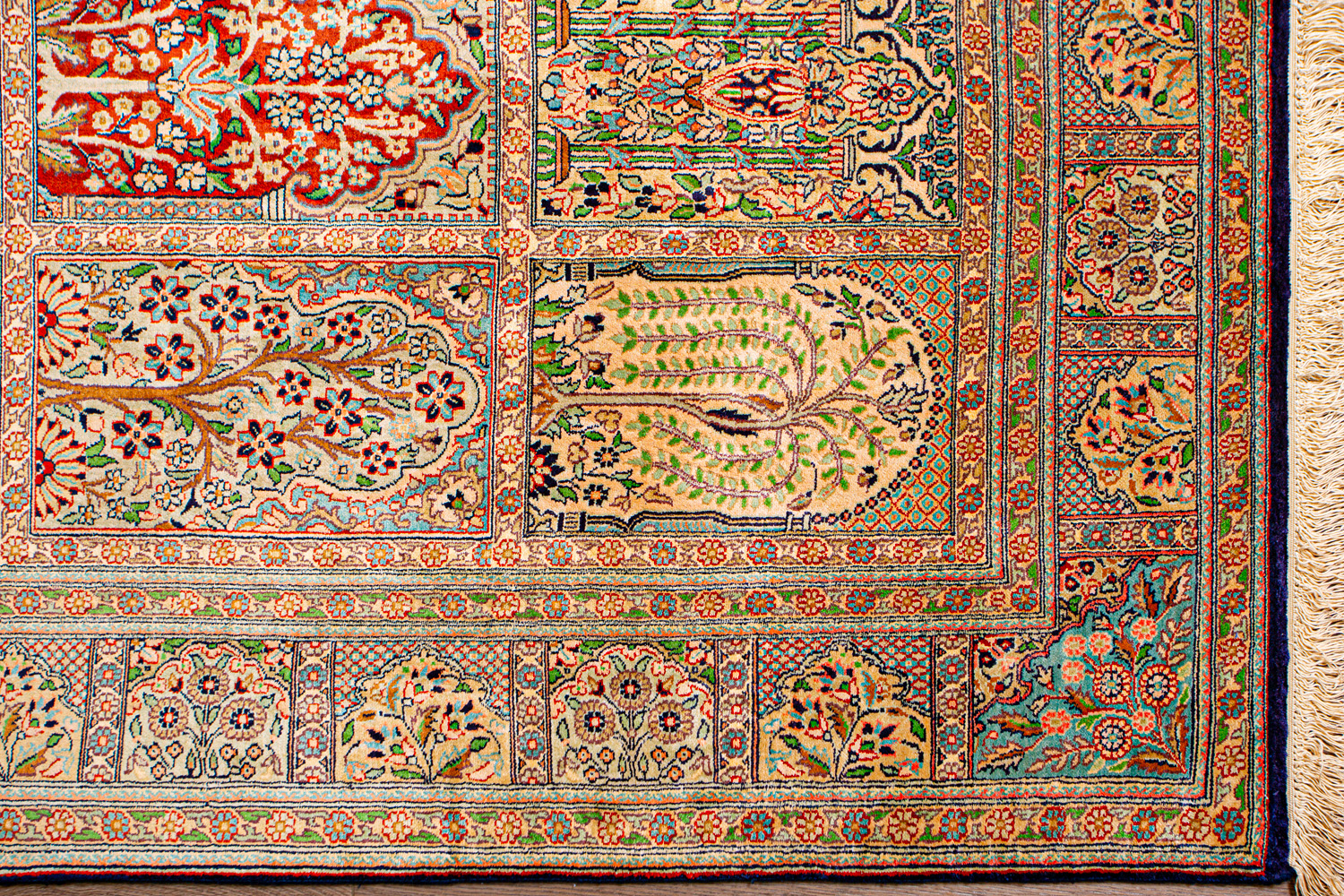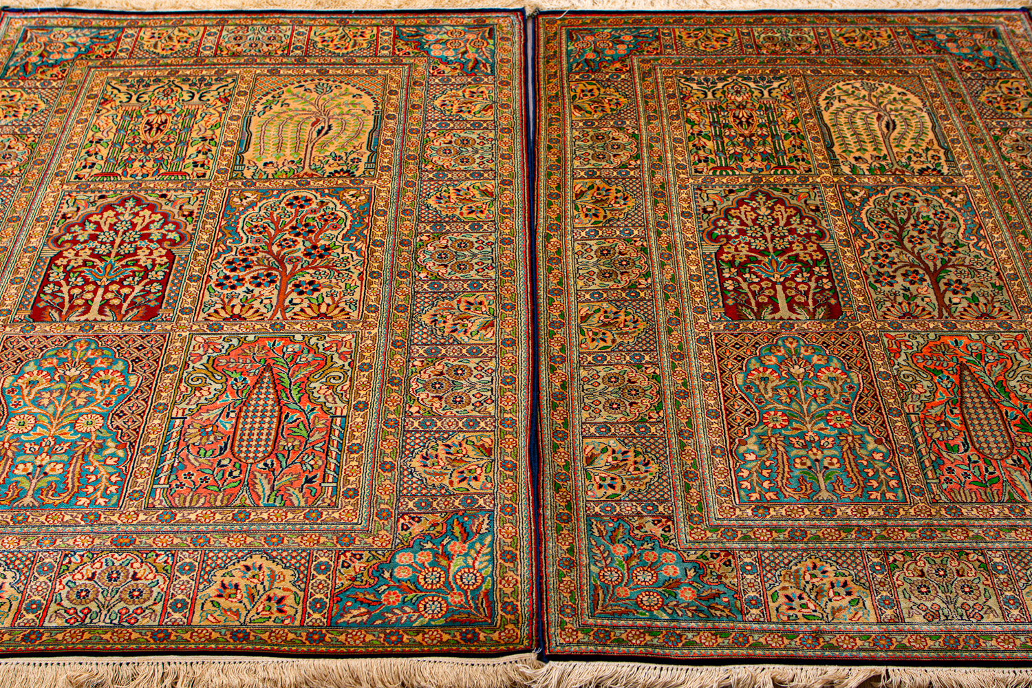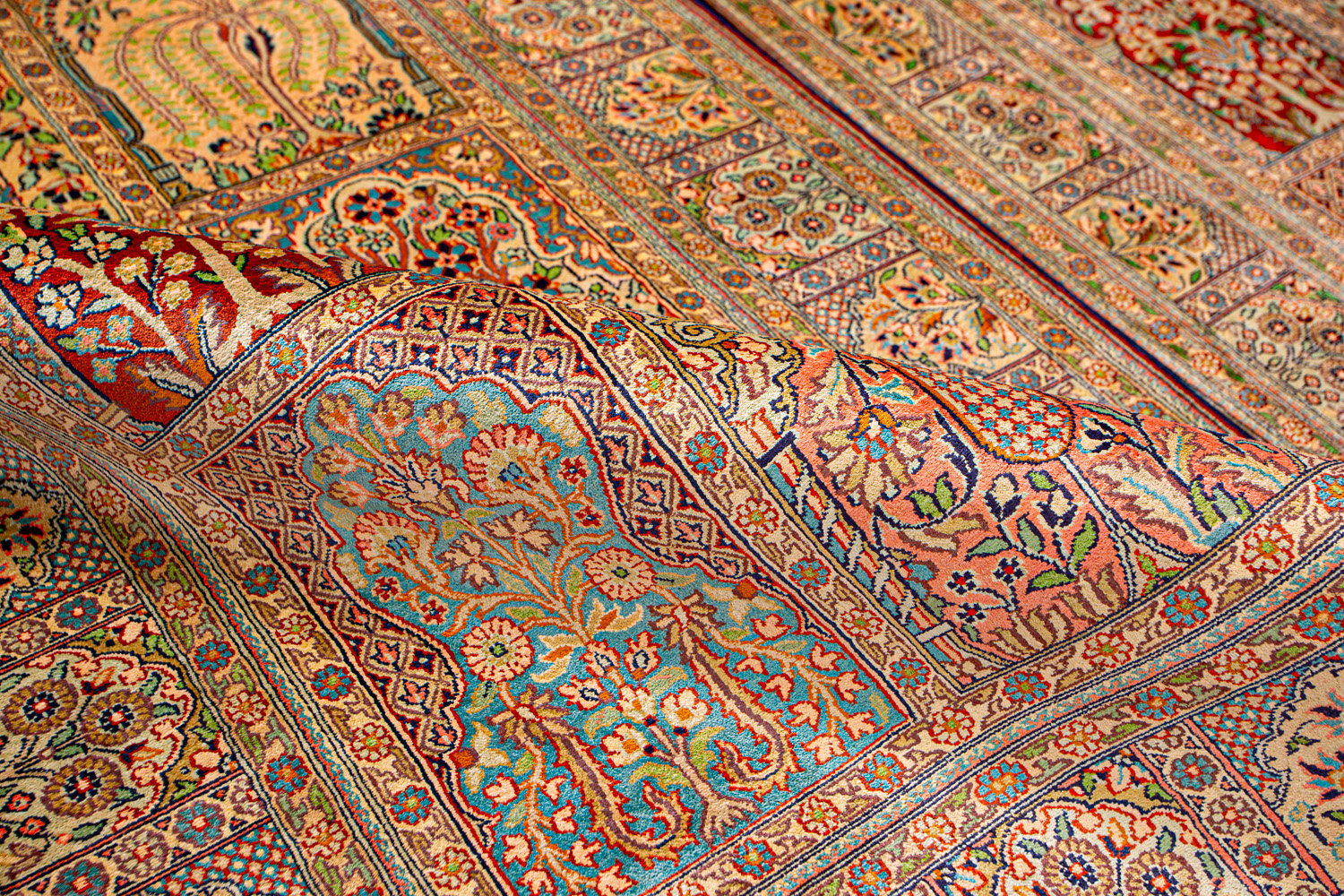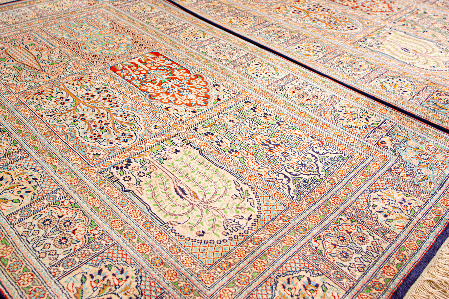 Ковры из коллекции Кашмир ткутся по традиционной технологии из нежнейшего кашмирского шелка. Лучшие произведения индийских мастеров отличает высокая узелковая плотность, прочность и яркость цветов.
