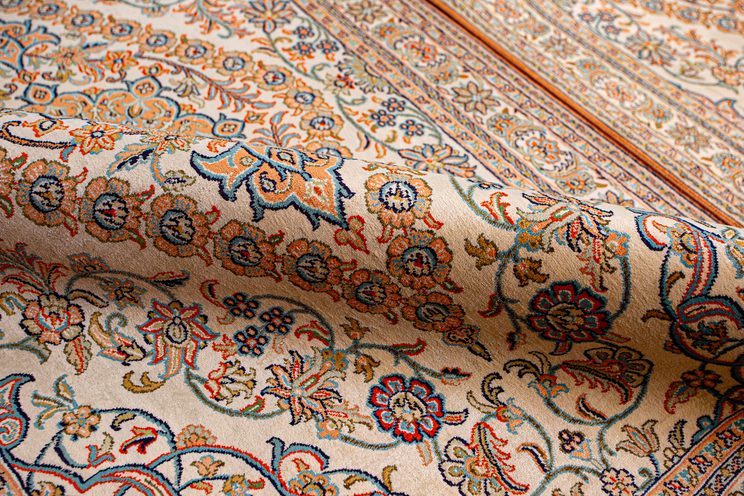 Ковры из коллекции Кашмир ткутся по традиционной технологии из нежнейшего кашмирского шелка. Лучшие произведения индийских мастеров отличает высокая узелковая плотность, прочность и яркость цветов.