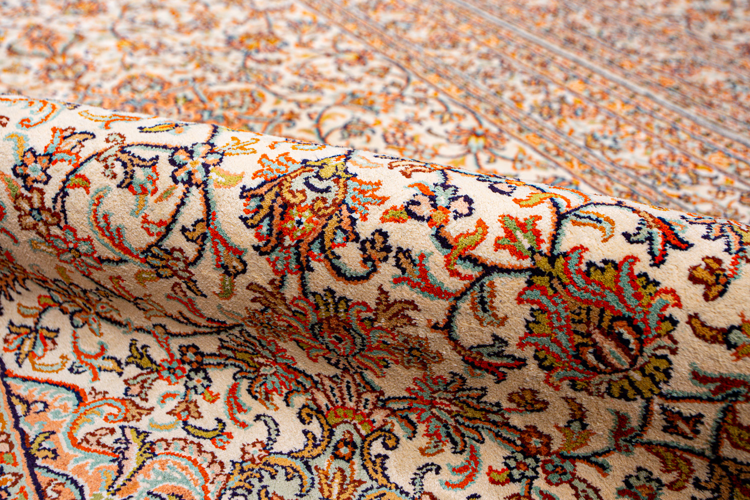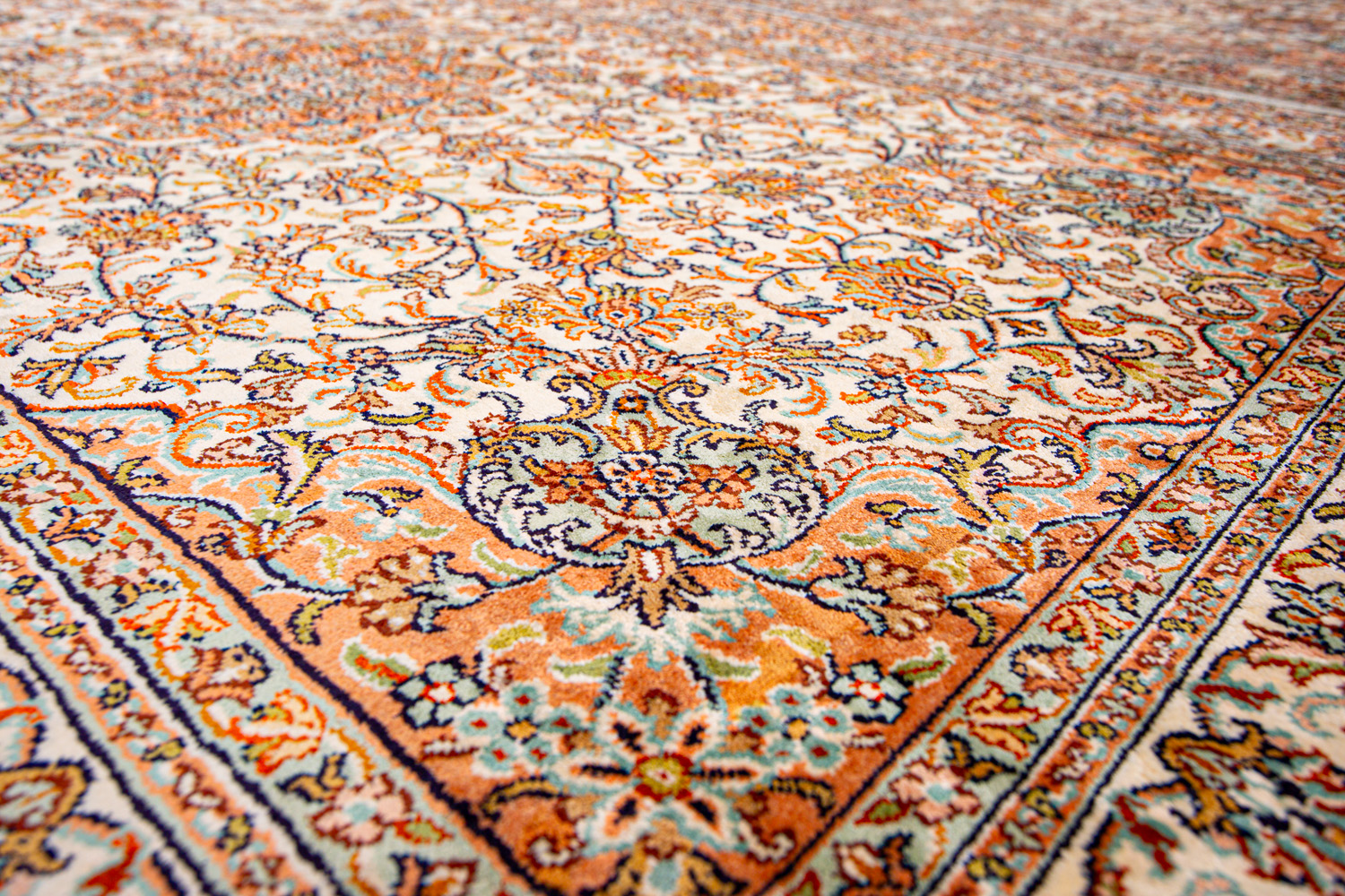 Ковры из коллекции Кашмир ткутся по традиционной технологии из нежнейшего кашмирского шелка. Лучшие произведения индийских мастеров отличает высокая узелковая плотность, прочность и яркость цветов.